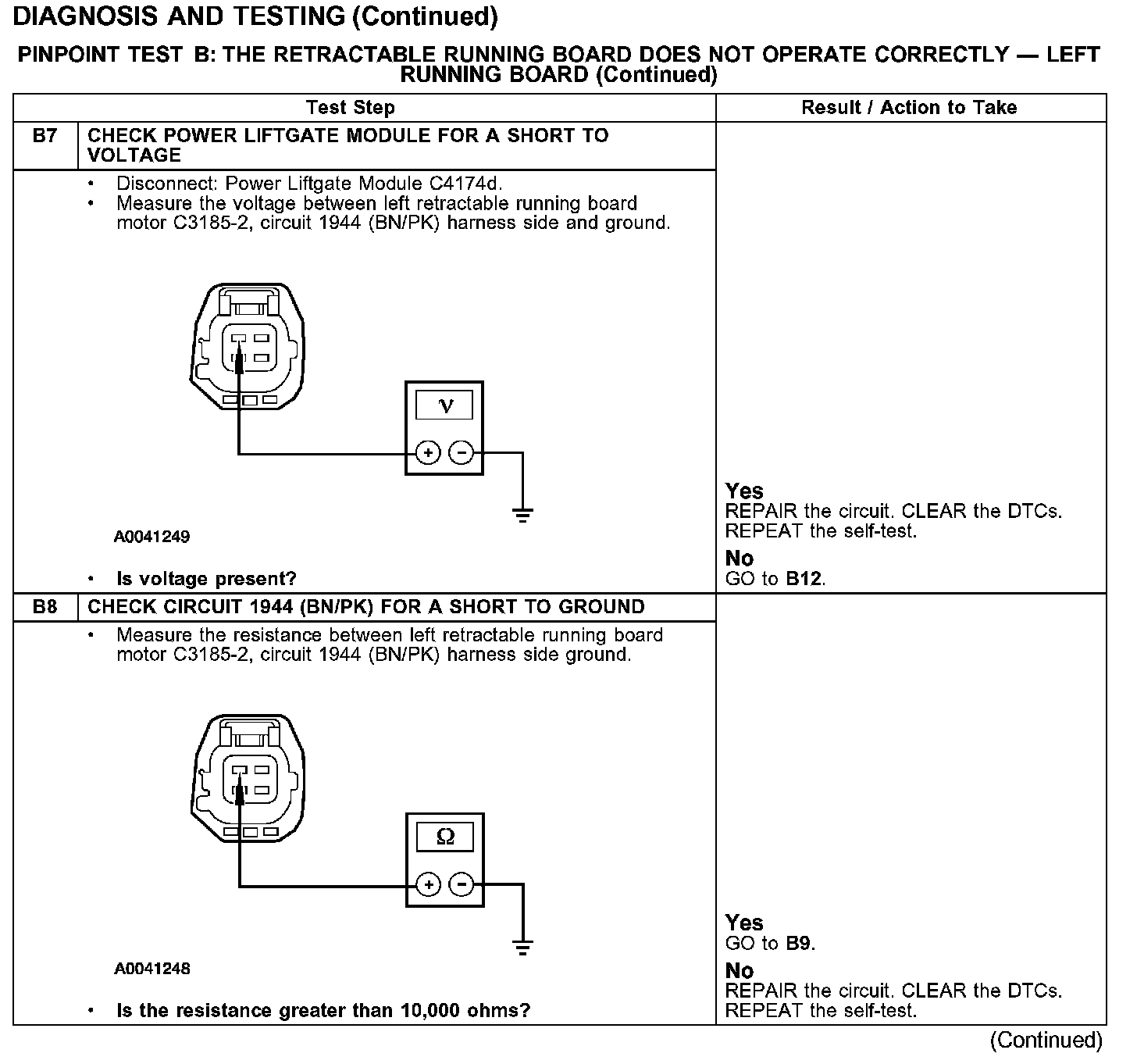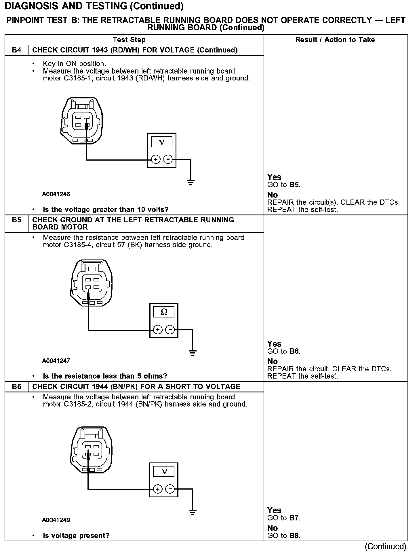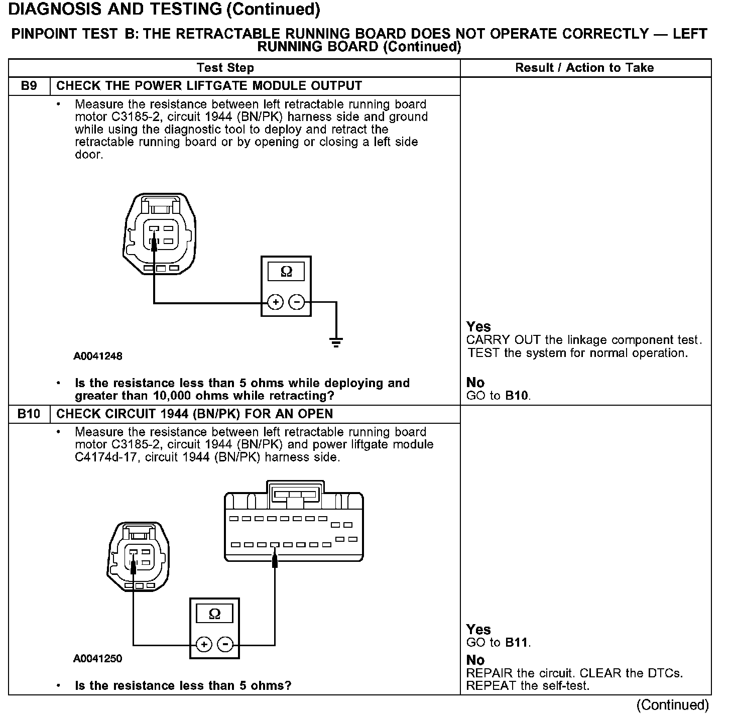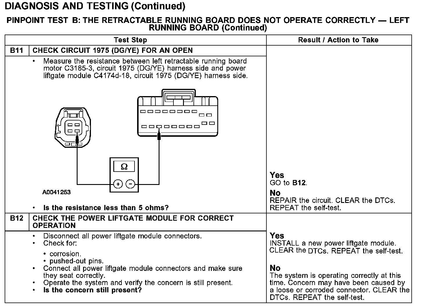 PINPOINT TEST B: THE RETRACTABLE RUNNING BOARD DOES NOT OPERATE CORRECTLY - LEFT RUNNING BOARD