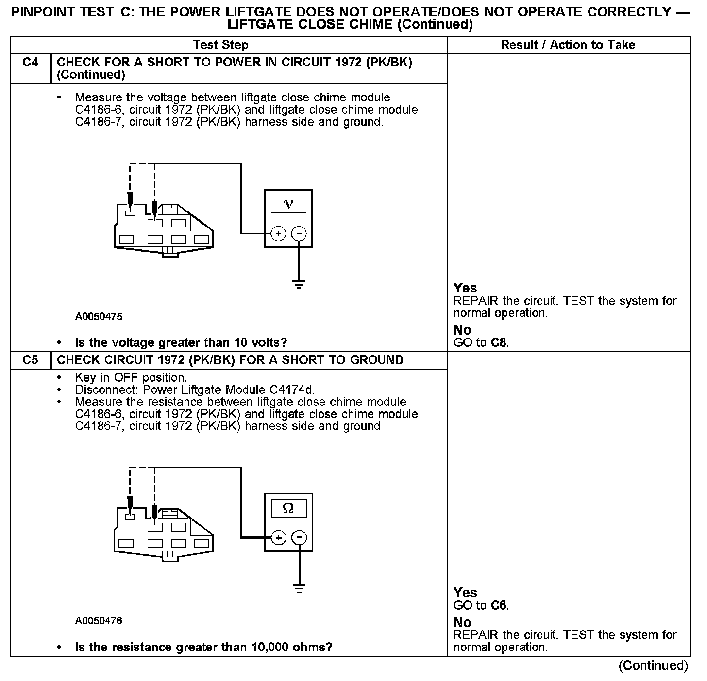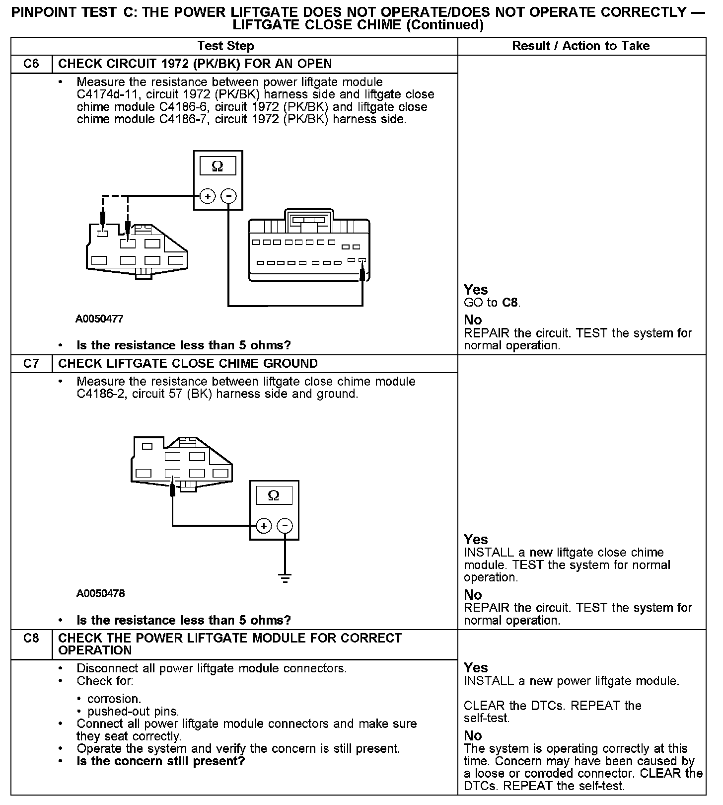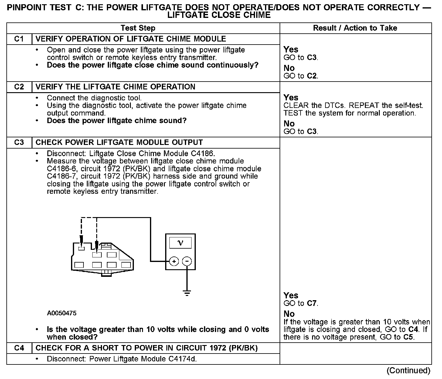 PINPOINT TEST C: THE POWER LIFTGATE DOES NOT OPERATE/DOES NOT OPERATE CORRECTLY - LIFTGATE CLOSE CHIME
