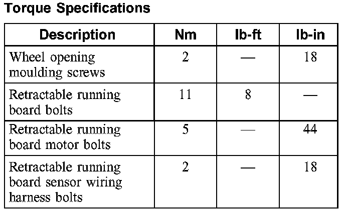 Torque Specifications: