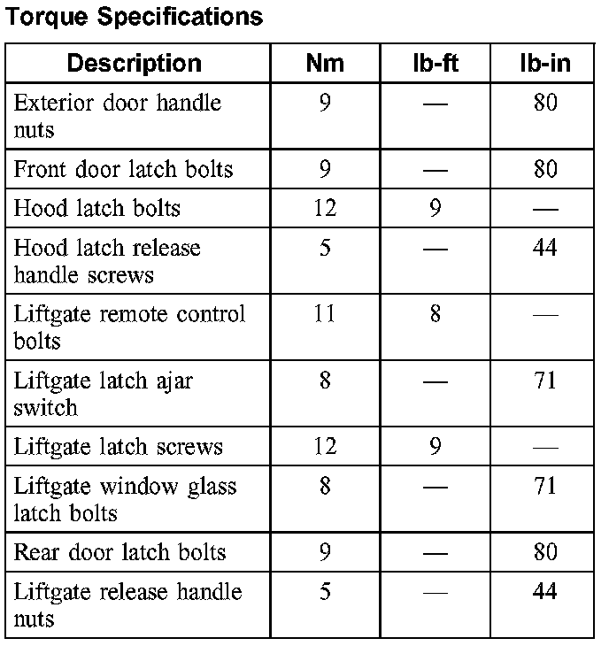 Torque Specifications: