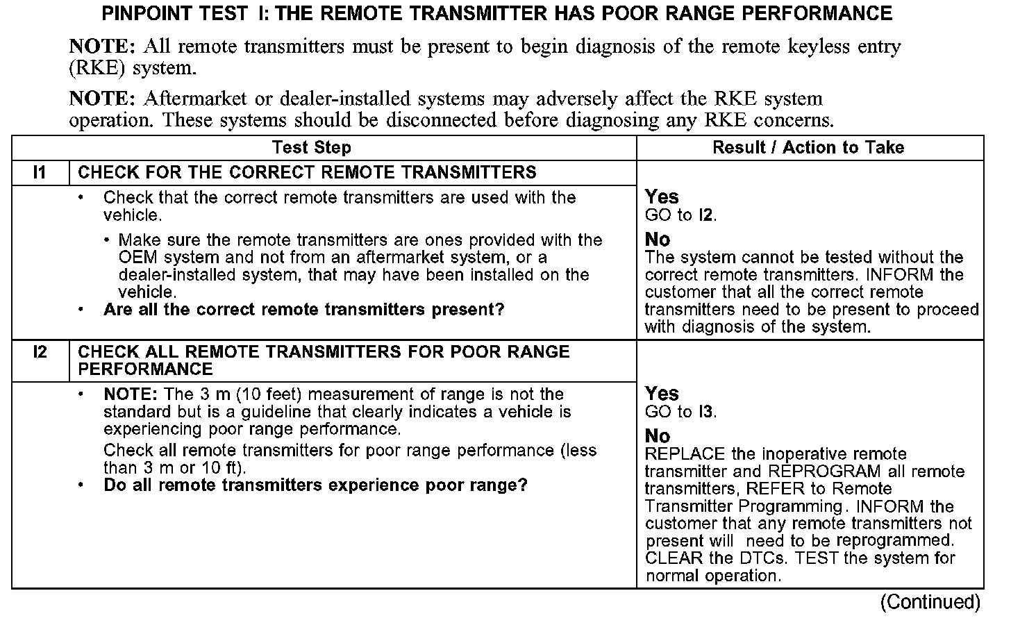 PINPOINT TEST I: THE REMOTE TRANSMITTER HAS POOR RANGE PERFORMANCE