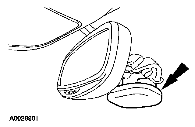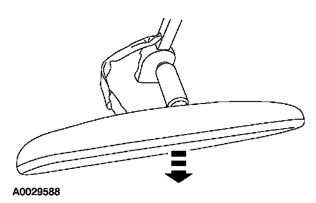 - Position the interior mirror in the full down position. Grasp the interior mirror and rotate, in a downward and toward the windshield direction, until it is released from the interior mirror windshield bracket.