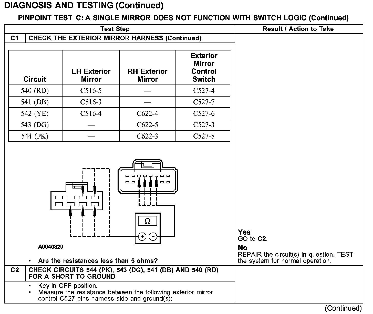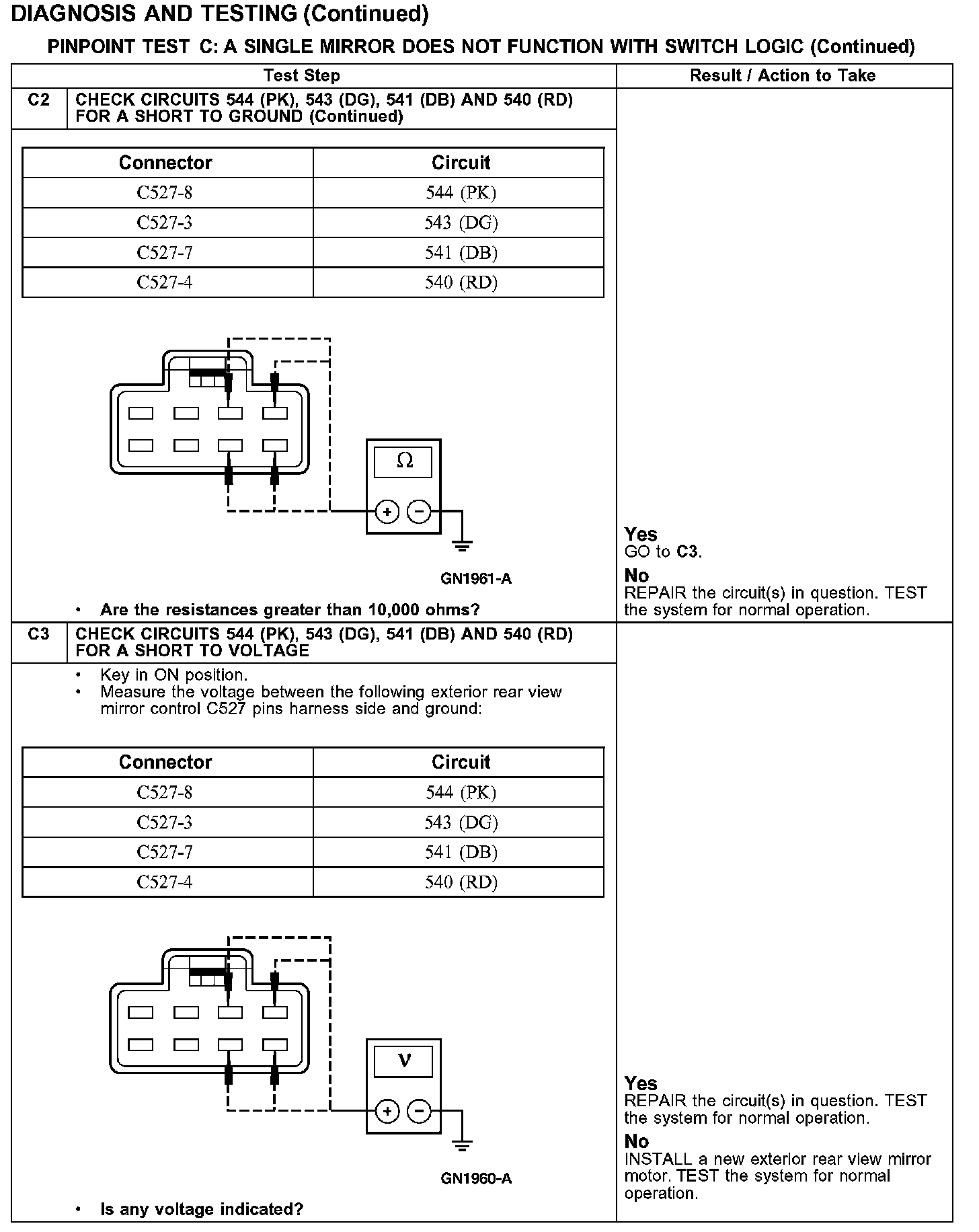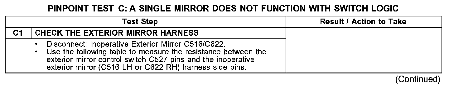 PINPOINT TEST C: A SINGLE MIRROR DOES NOT FUNCTION WITH SWITCH LOGIC