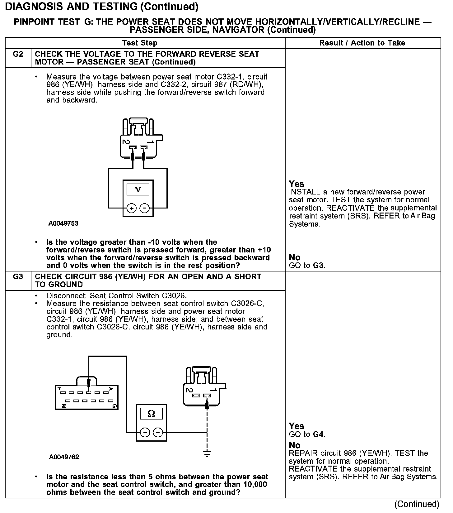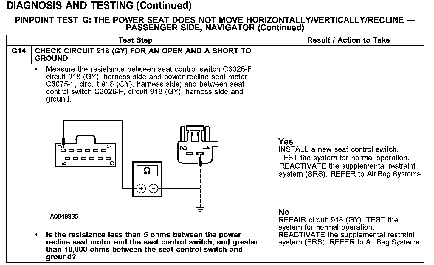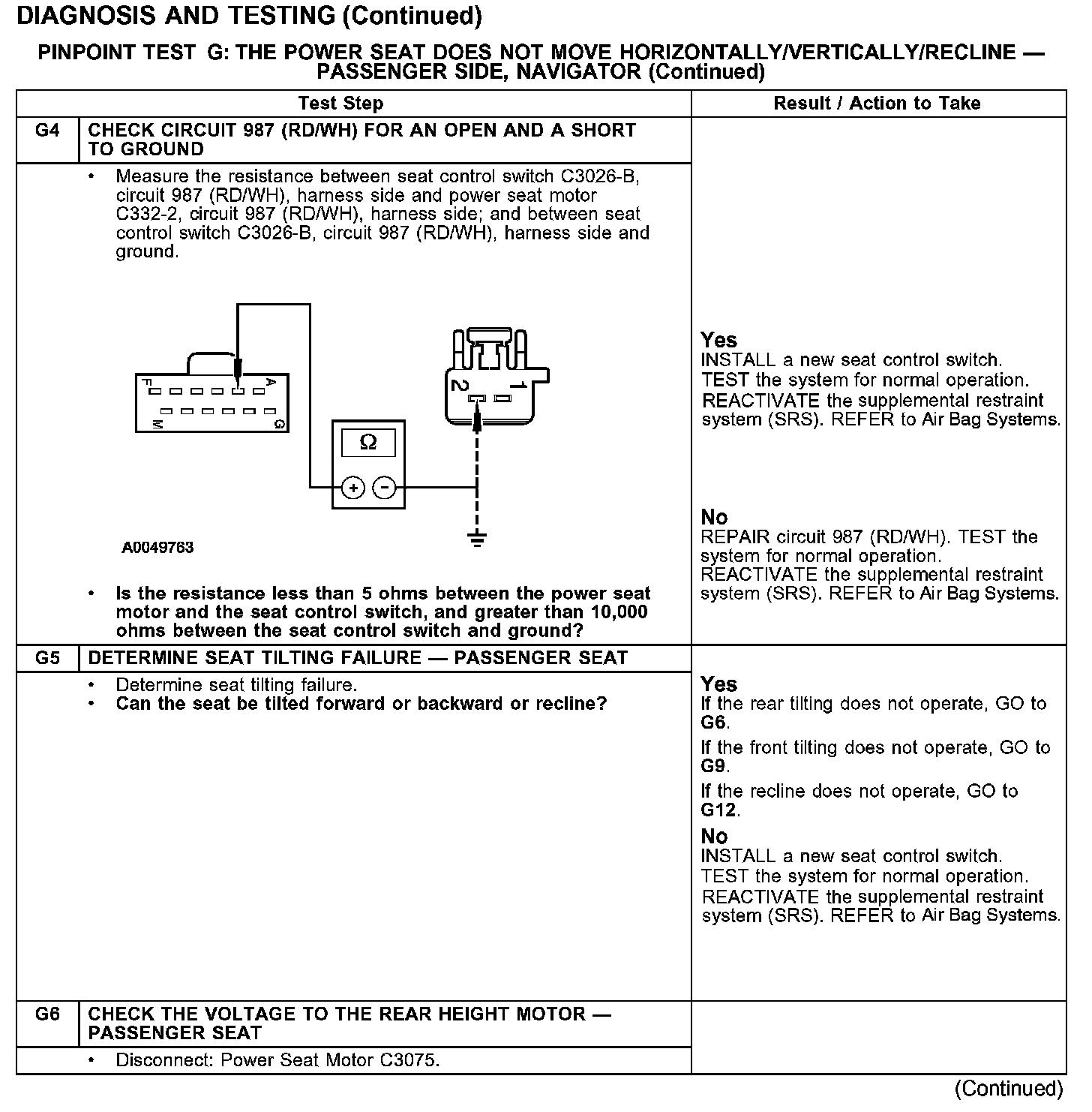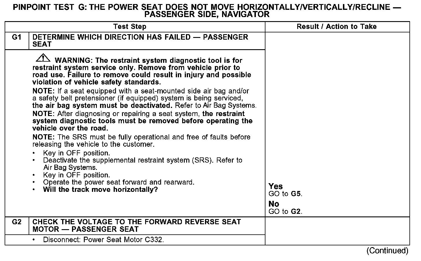 PINPOINT TEST G: THE POWER SEAT DOES NOT MOVE HORIZONTALLY/VERTICALLY/RECLINE - PASSENGER SIDE, NAVIGATOR