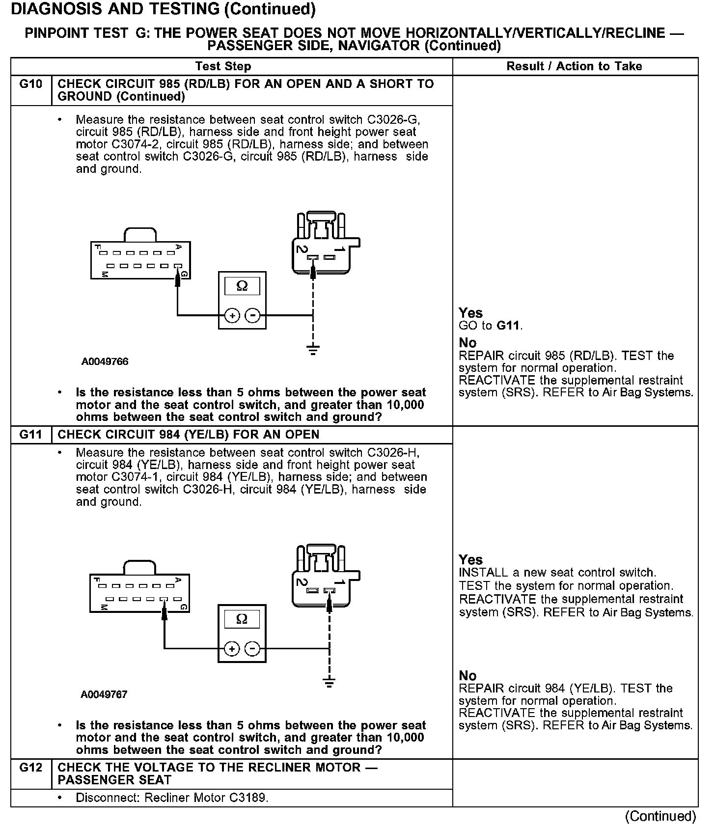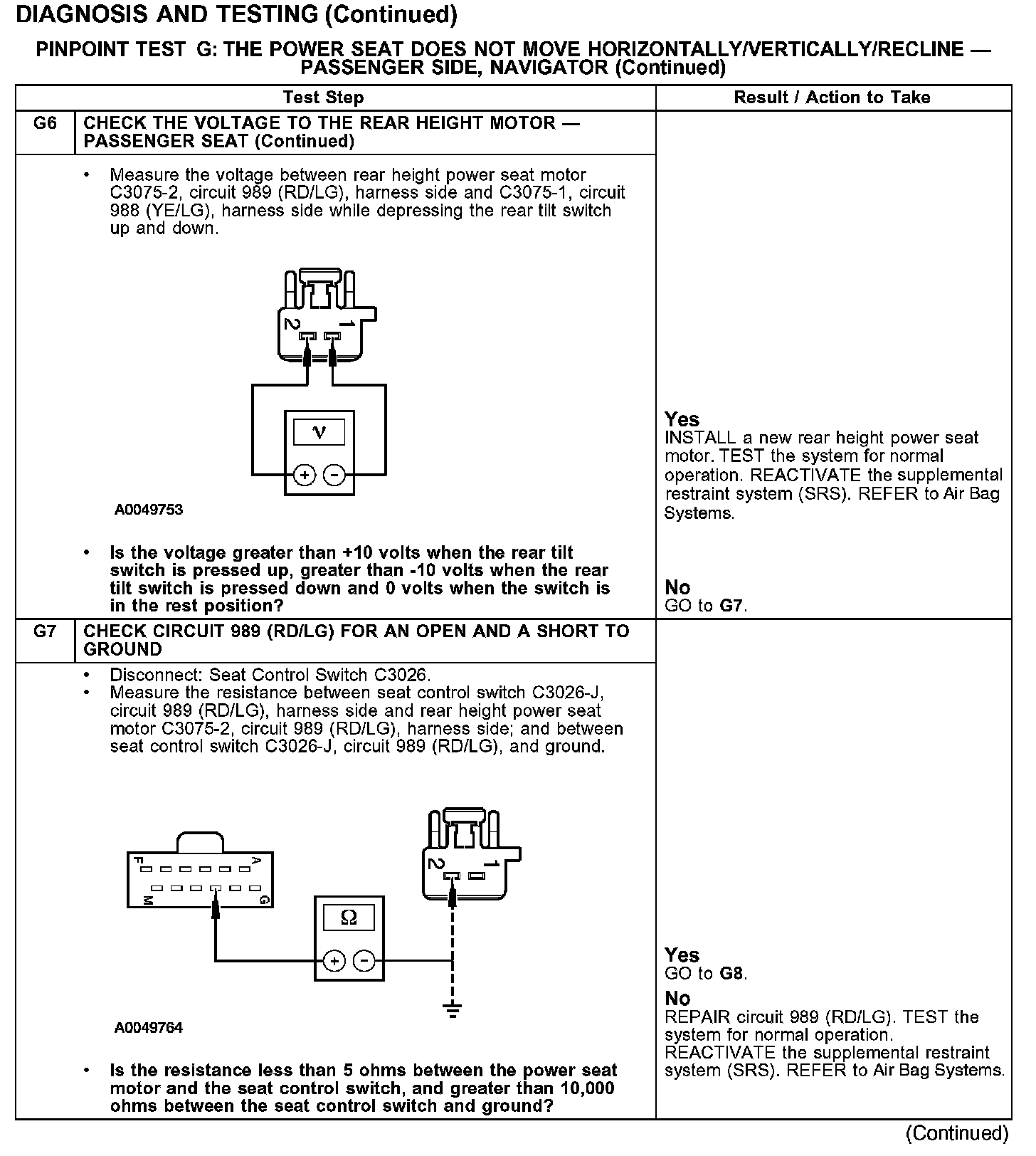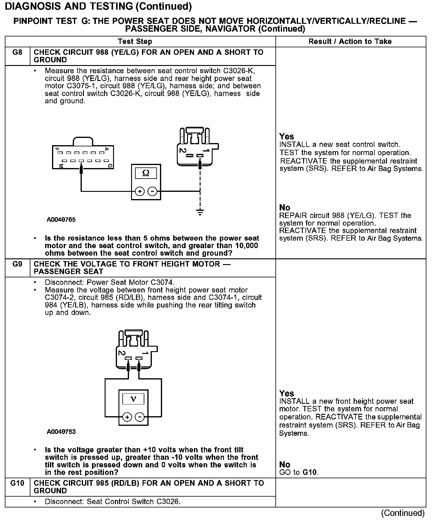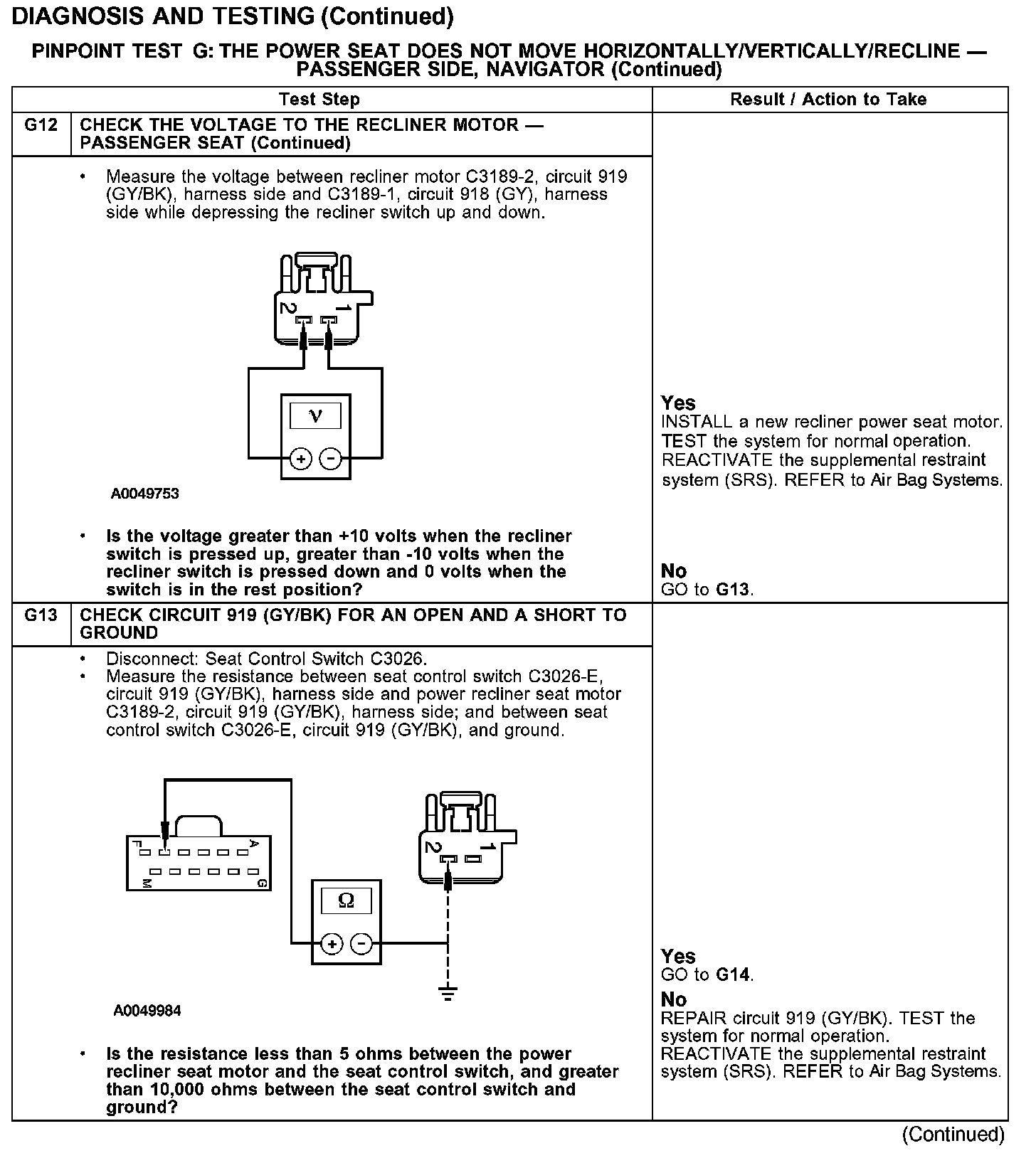 PINPOINT TEST G: THE POWER SEAT DOES NOT MOVE HORIZONTALLY/VERTICALLY/RECLINE - PASSENGER SIDE, NAVIGATOR