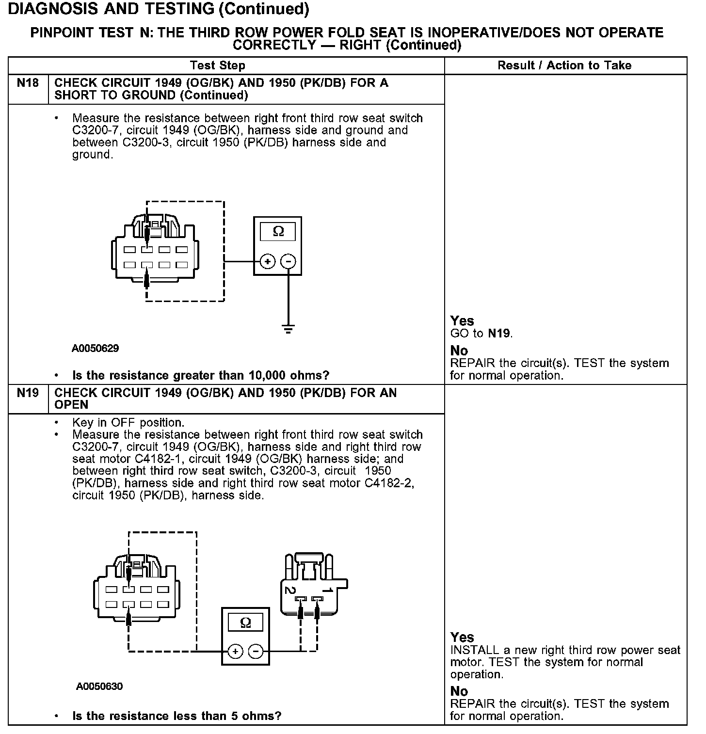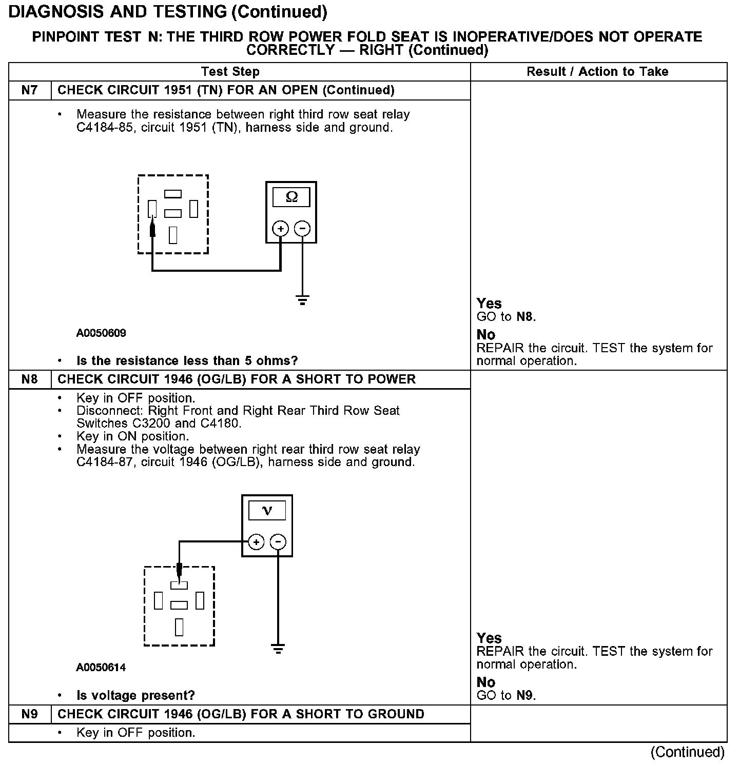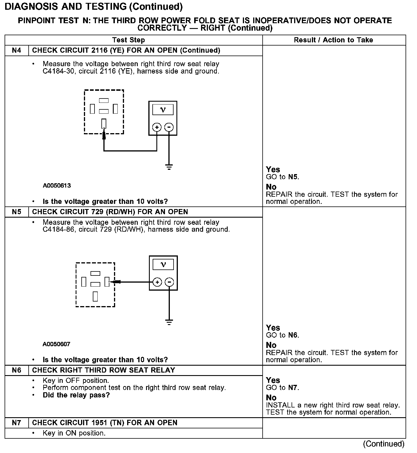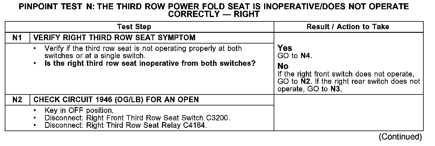 PINPOINT TEST N: THE THIRD ROW POWER FOLD SEAT IS INOPERATIVE/DOES NOT OPERATE CORRECTLY - RIGHT