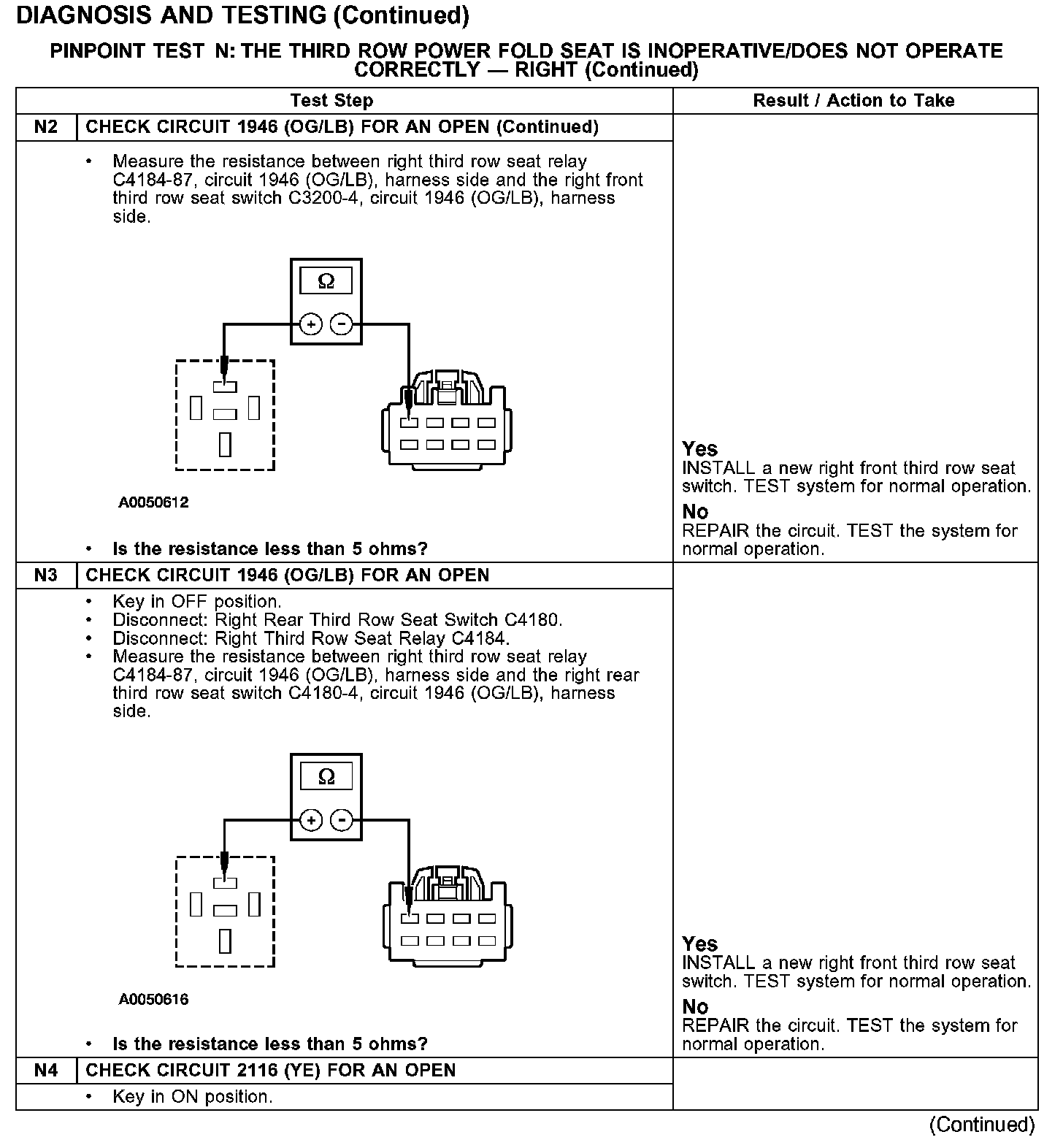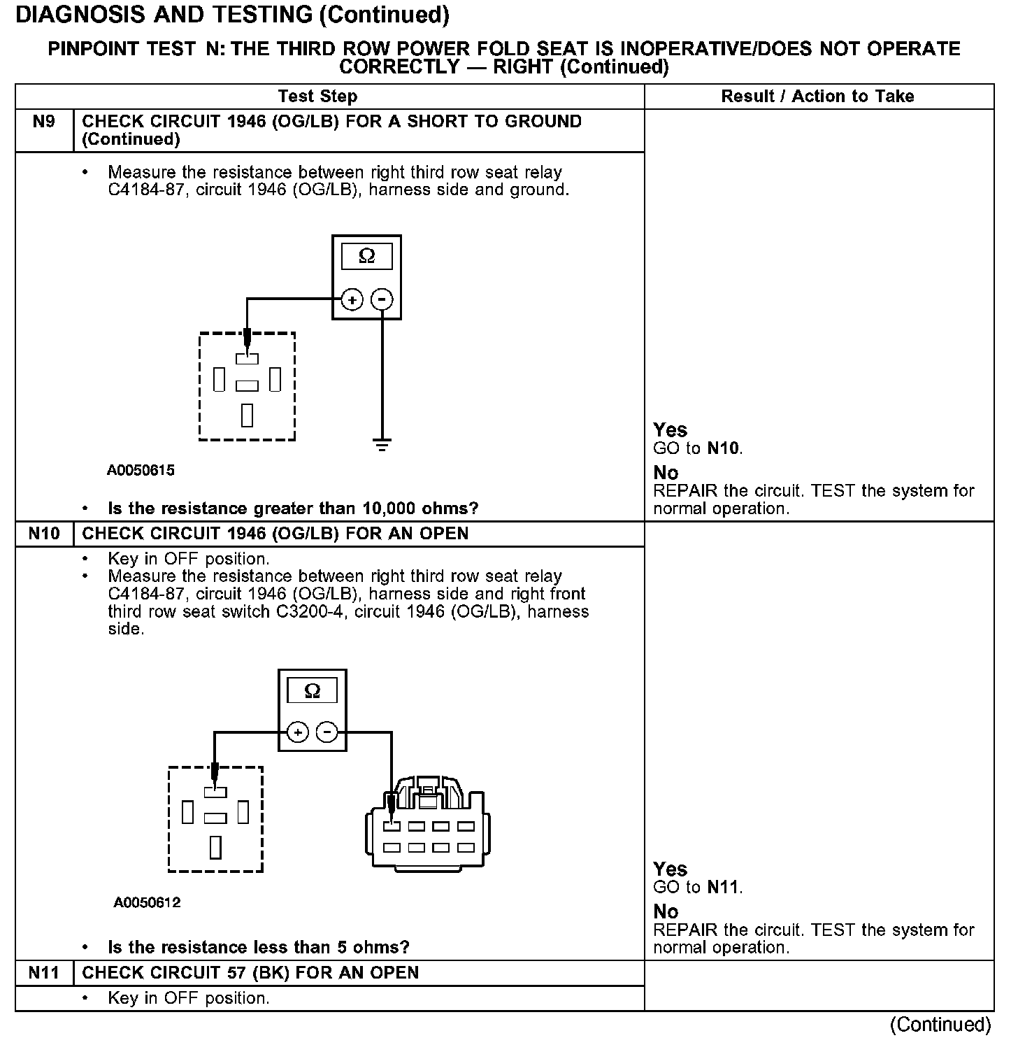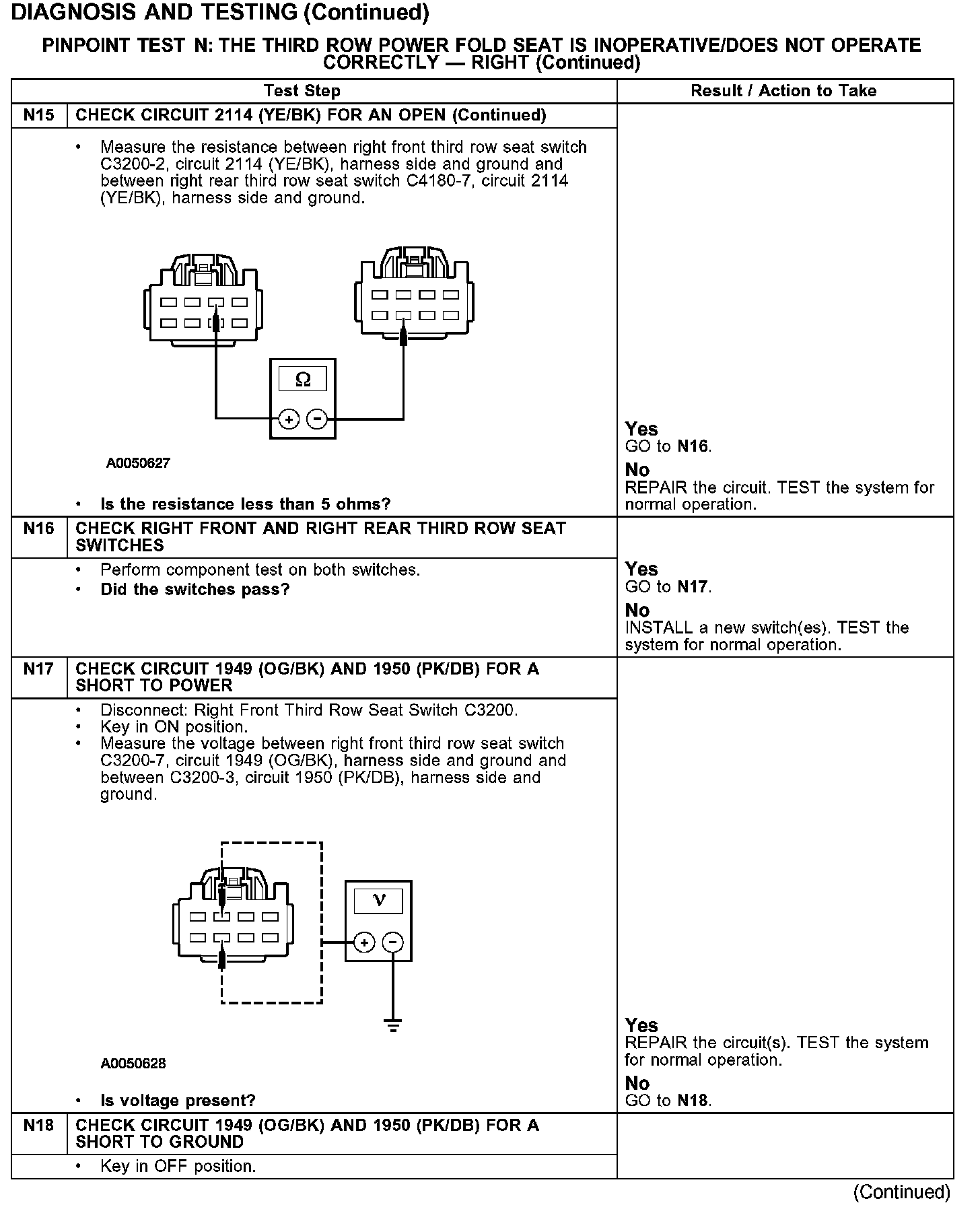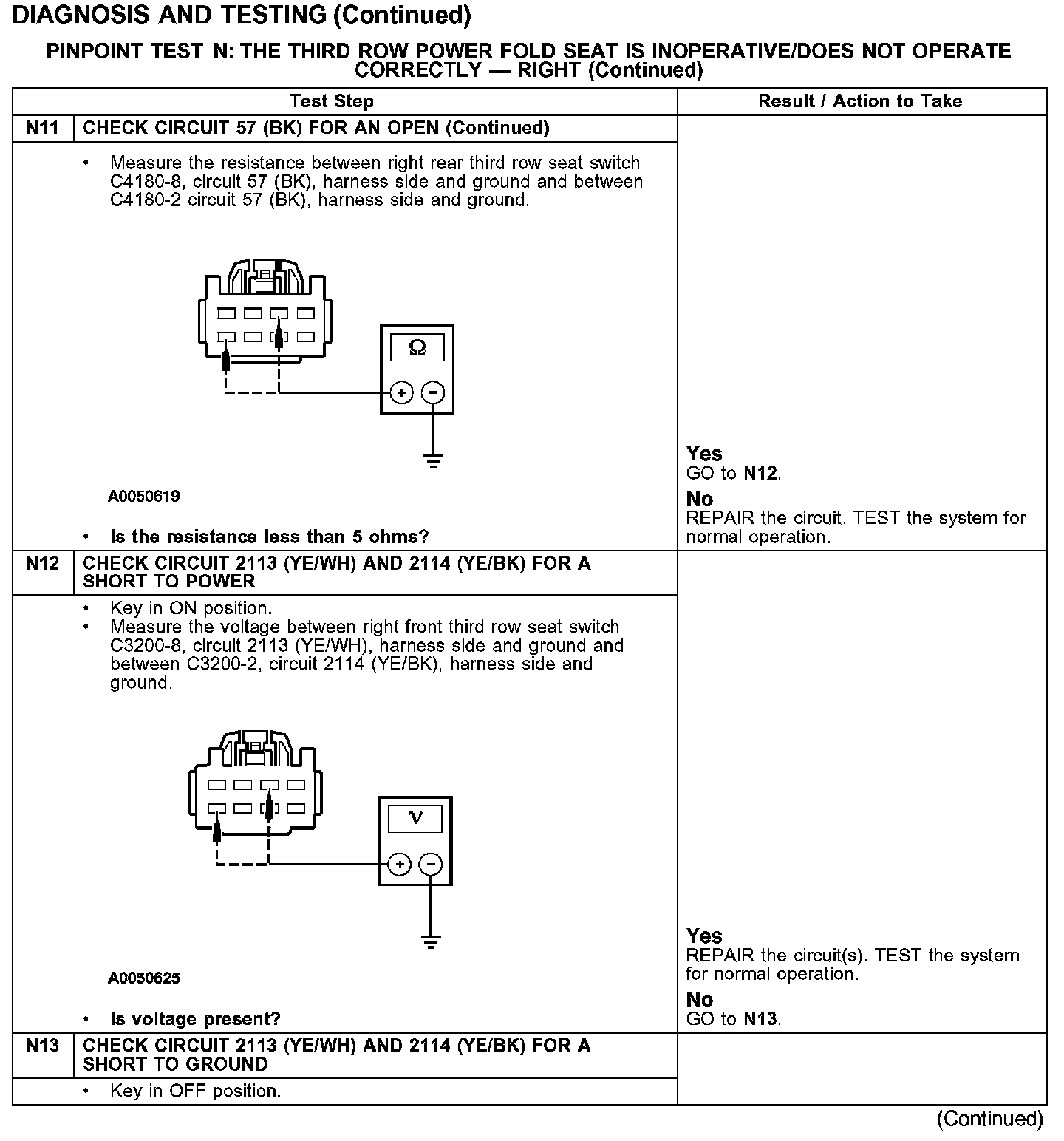 PINPOINT TEST N: THE THIRD ROW POWER FOLD SEAT IS INOPERATIVE/DOES NOT OPERATE CORRECTLY - RIGHT