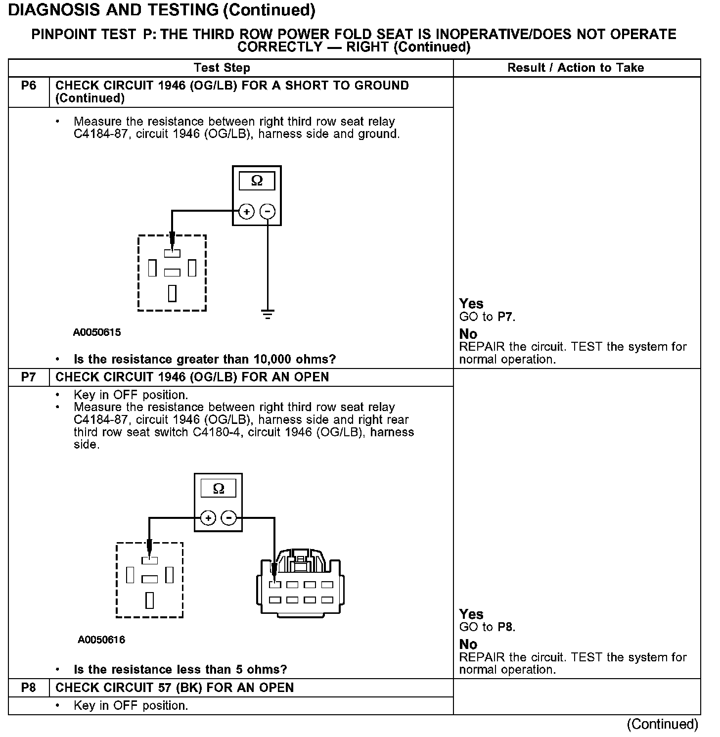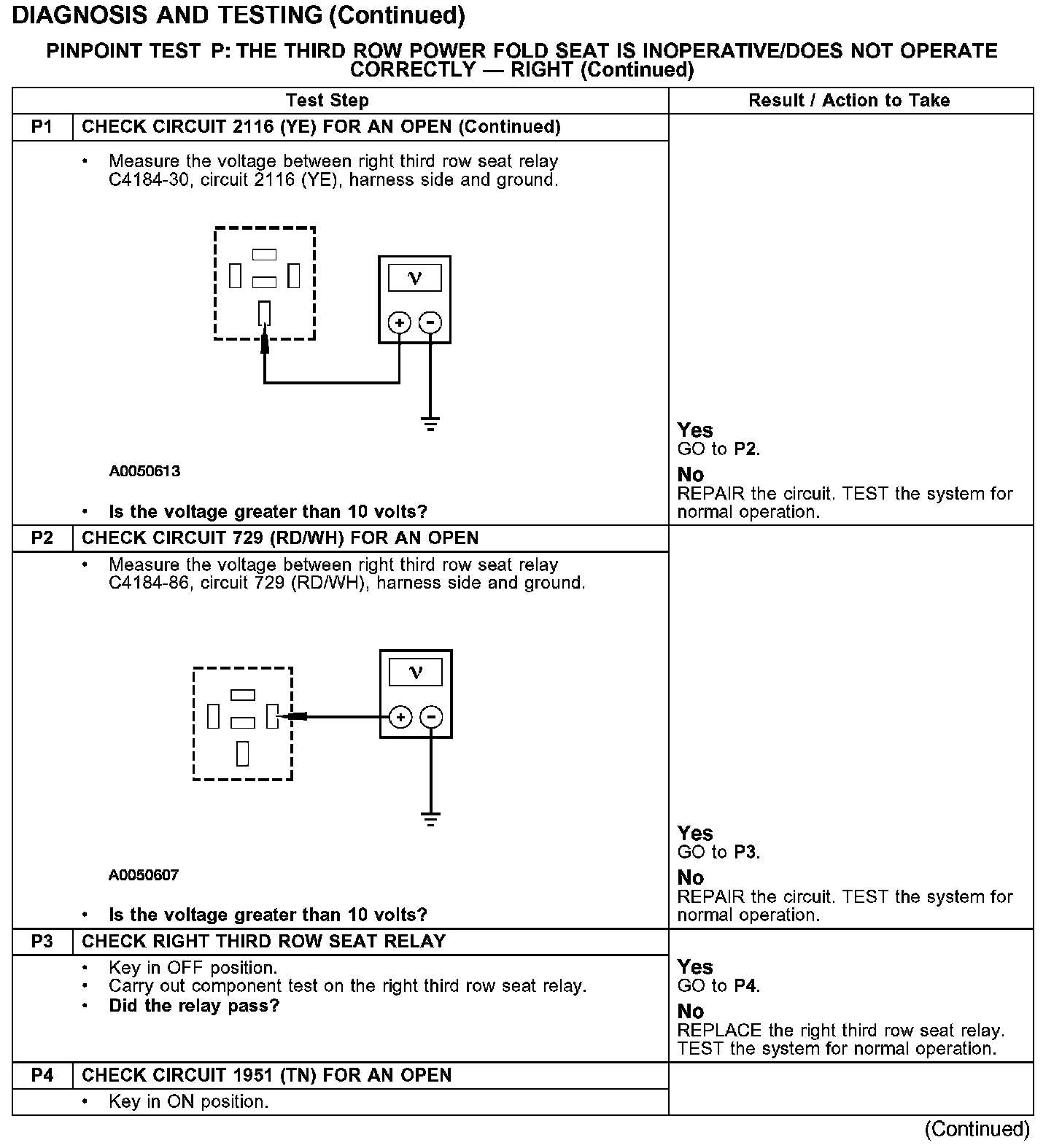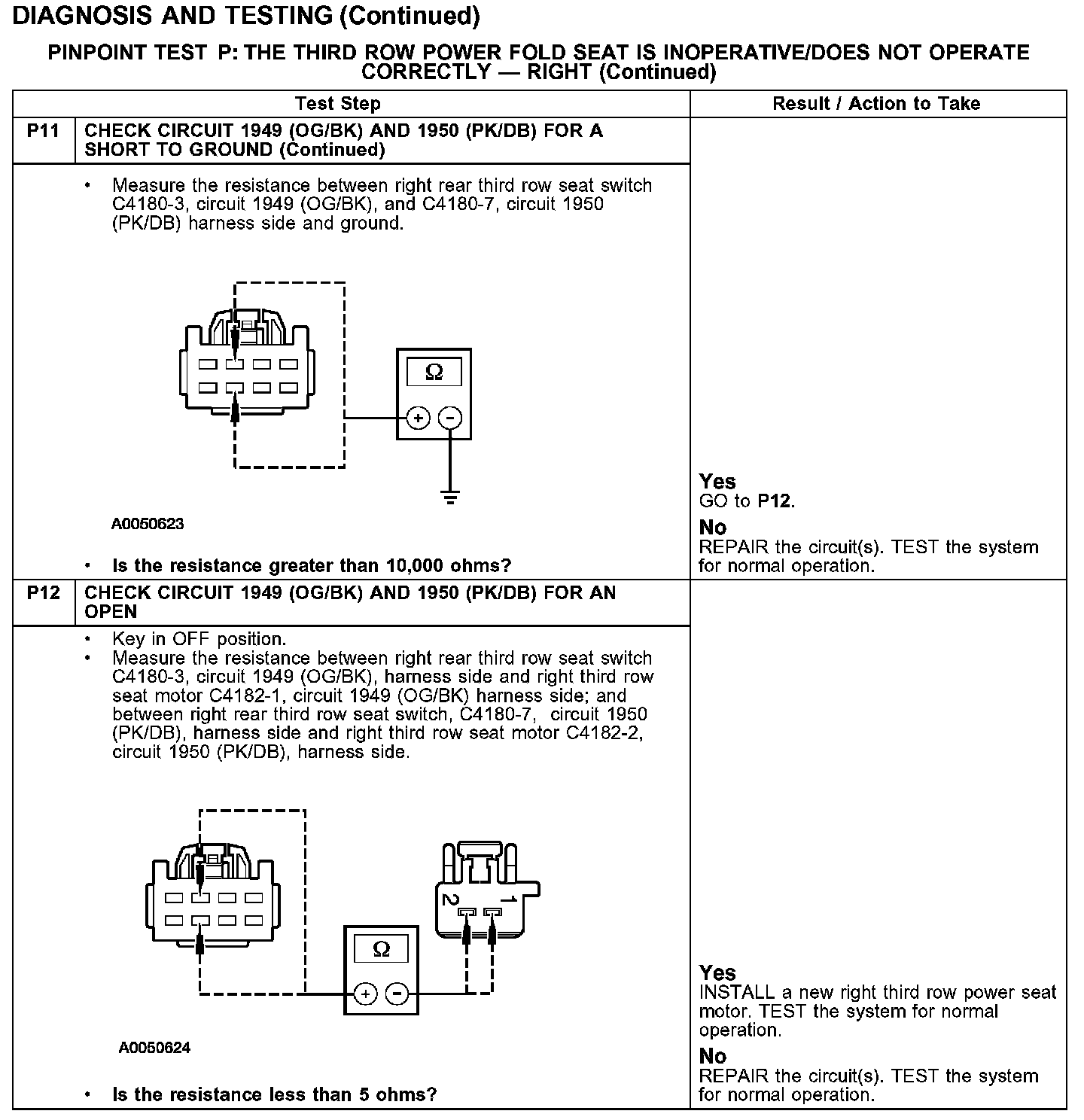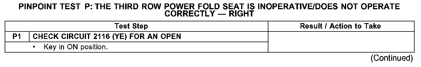PINPOINT TEST P: THE THIRD ROW POWER FOLD SEAT IS INOPERATIVE/DOES NOT OPERATE CORRECTLY - RIGHT