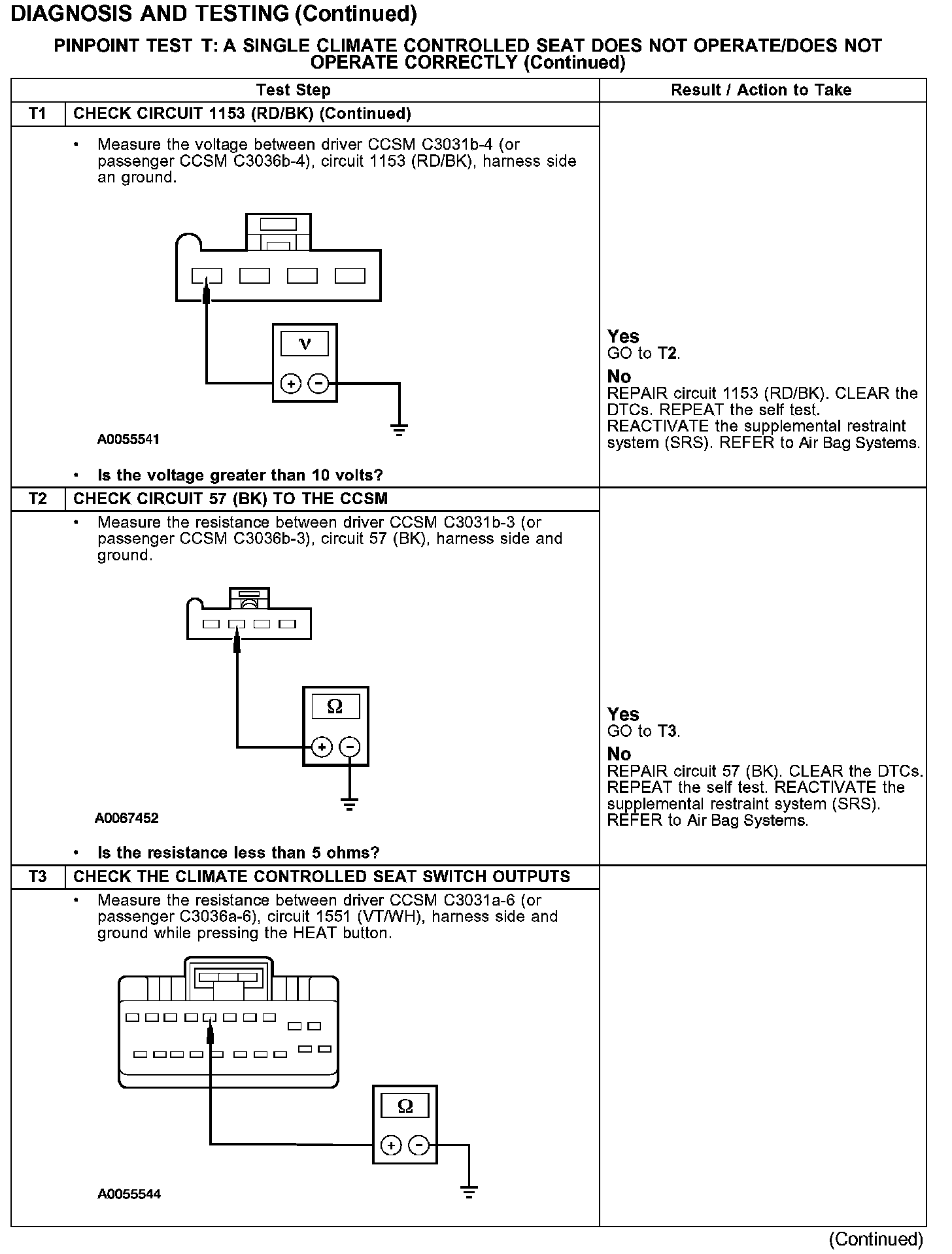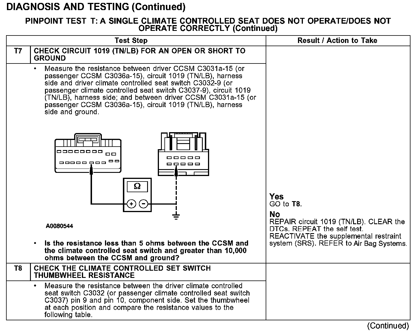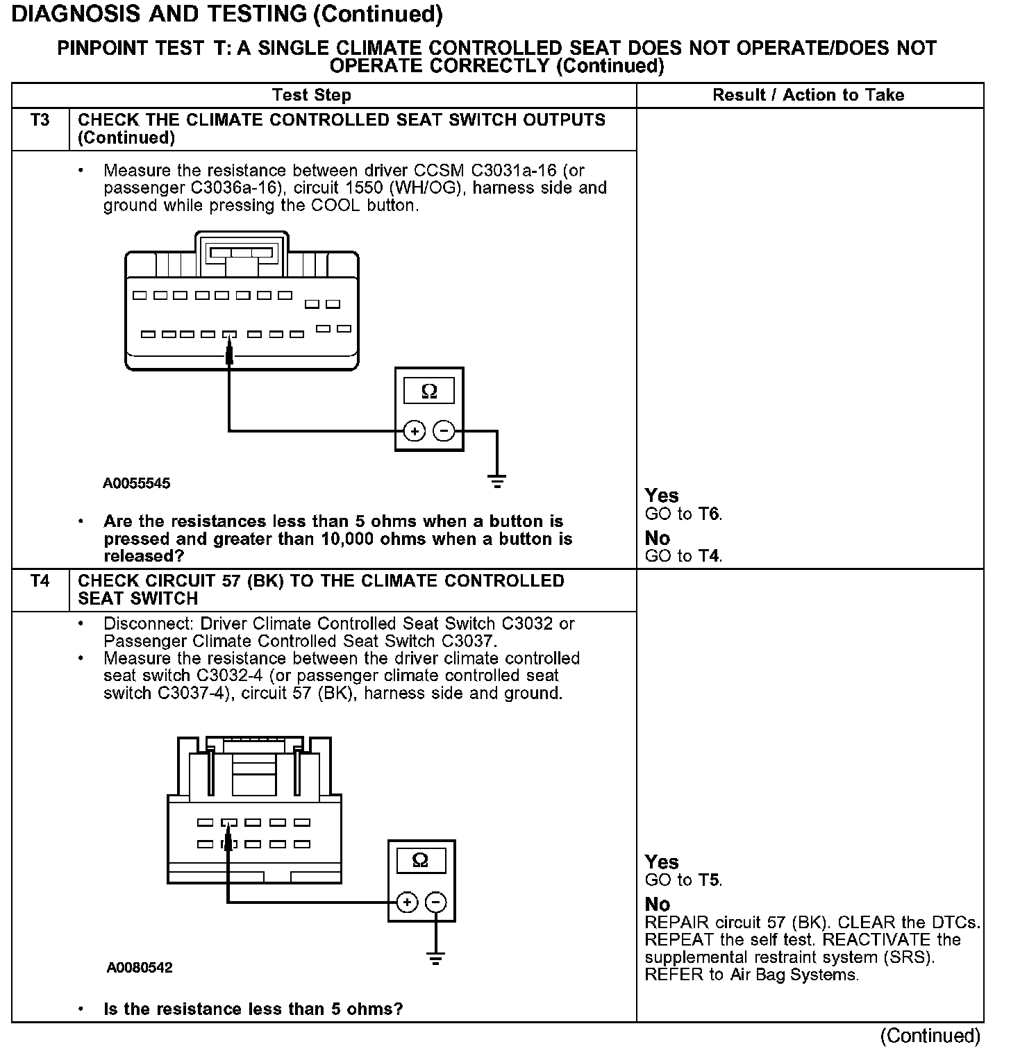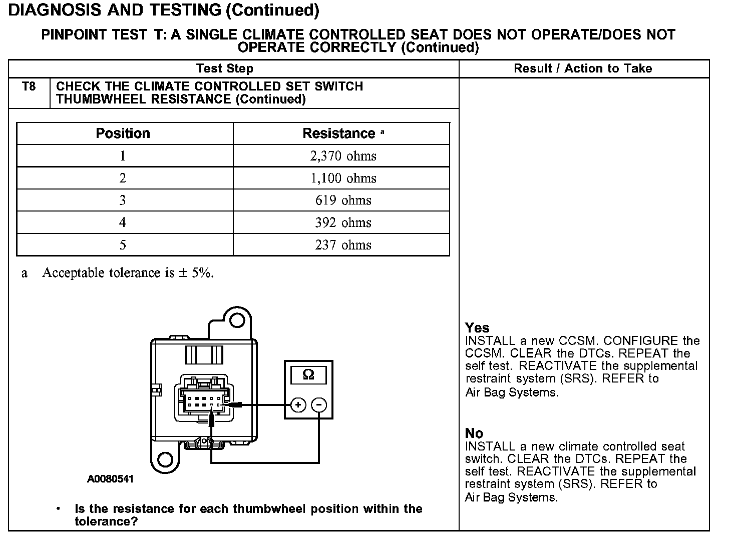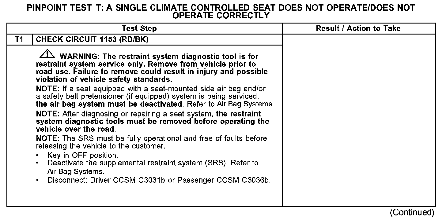 PINPOINT TEST T: A SINGLE CLIMATE CONTROLLED SEAT DOES NOT OPERATE/DOES NOT OPERATE CORRECTLY