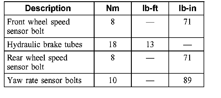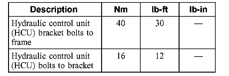 Torque Specifications: