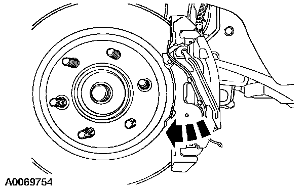 4. CAUTION: If the anchor housing spring is to be reused, do not force the anchor housing spring off the brake caliper. Do not install a damaged anchor housing spring.