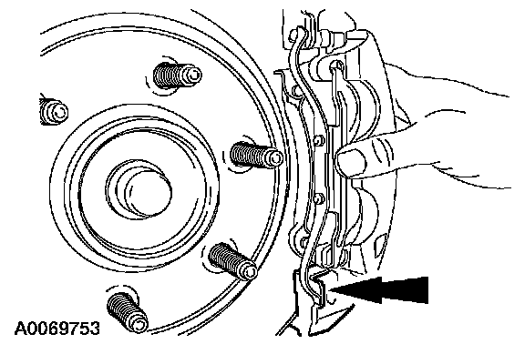 2 Twist tab into the brake caliper cavity (LH side-upper brake caliper cavity/RH side-lower brake caliper cavity).