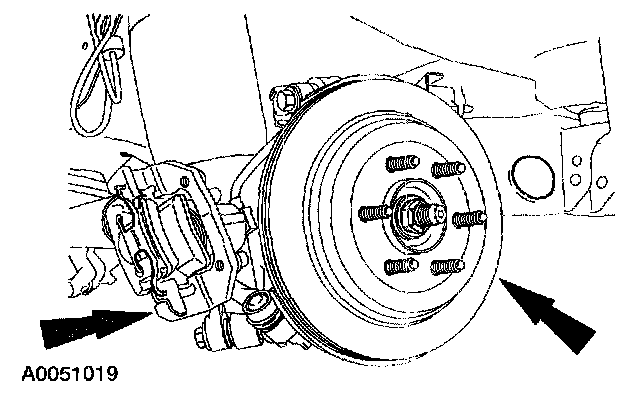 NOTE: Inspect the brake disc. If it is scored, it must be resurfaced. Also, resurface the rear brake disc if a test drive has identified vibration transmitted through the steering wheel, seat or brake pedal while braking.