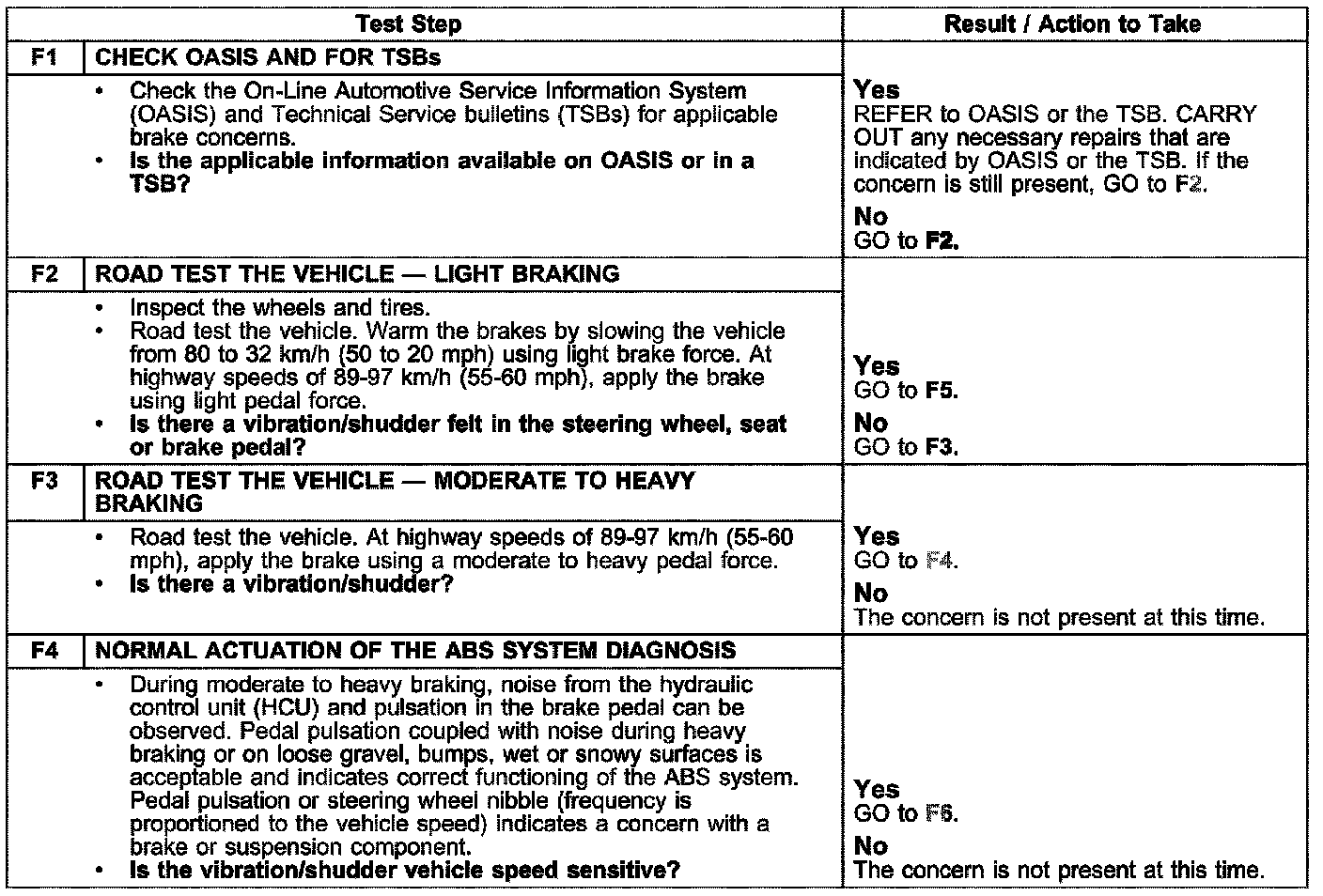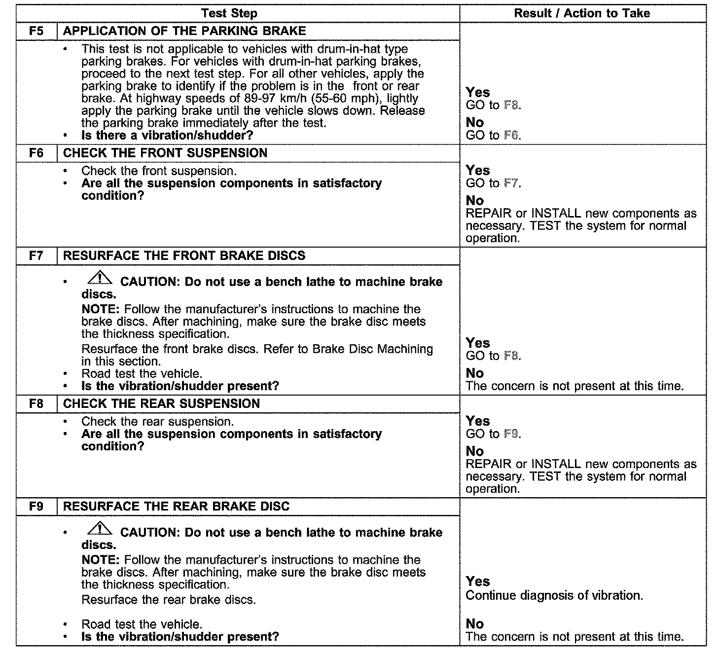 PINPOINT TEST F: VIBRATION WHEN BRAKES ARE APPLIED