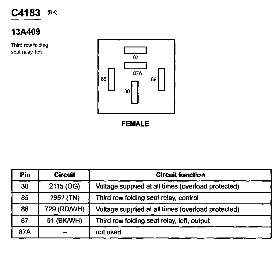Third Row Folding Seat Relay, Left