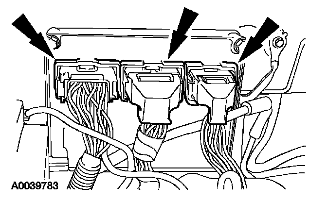 3. Disconnect the powertrain control module (PCM) electrical connectors.