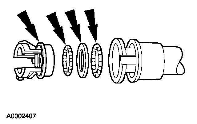 2. Install a new coupling retainer, spacer, and lubricated O-ring seals into the quick disconnect coupling housing.