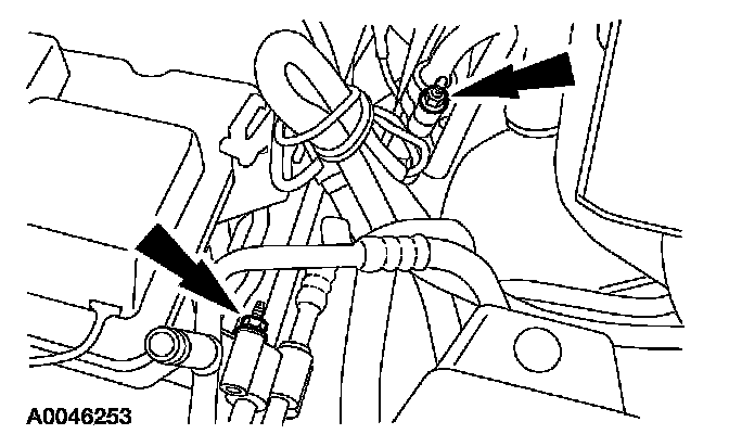 5. NOTE: Both A/C fittings must be disconnected even if only one line is to be removed.