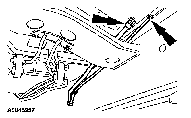 1. Partially lower the vehicle to allow access to both the rear auxiliary line fittings and the underside of the vehicle.
