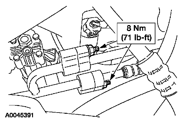 4. Remove the nuts and disconnect the A/C fittings.