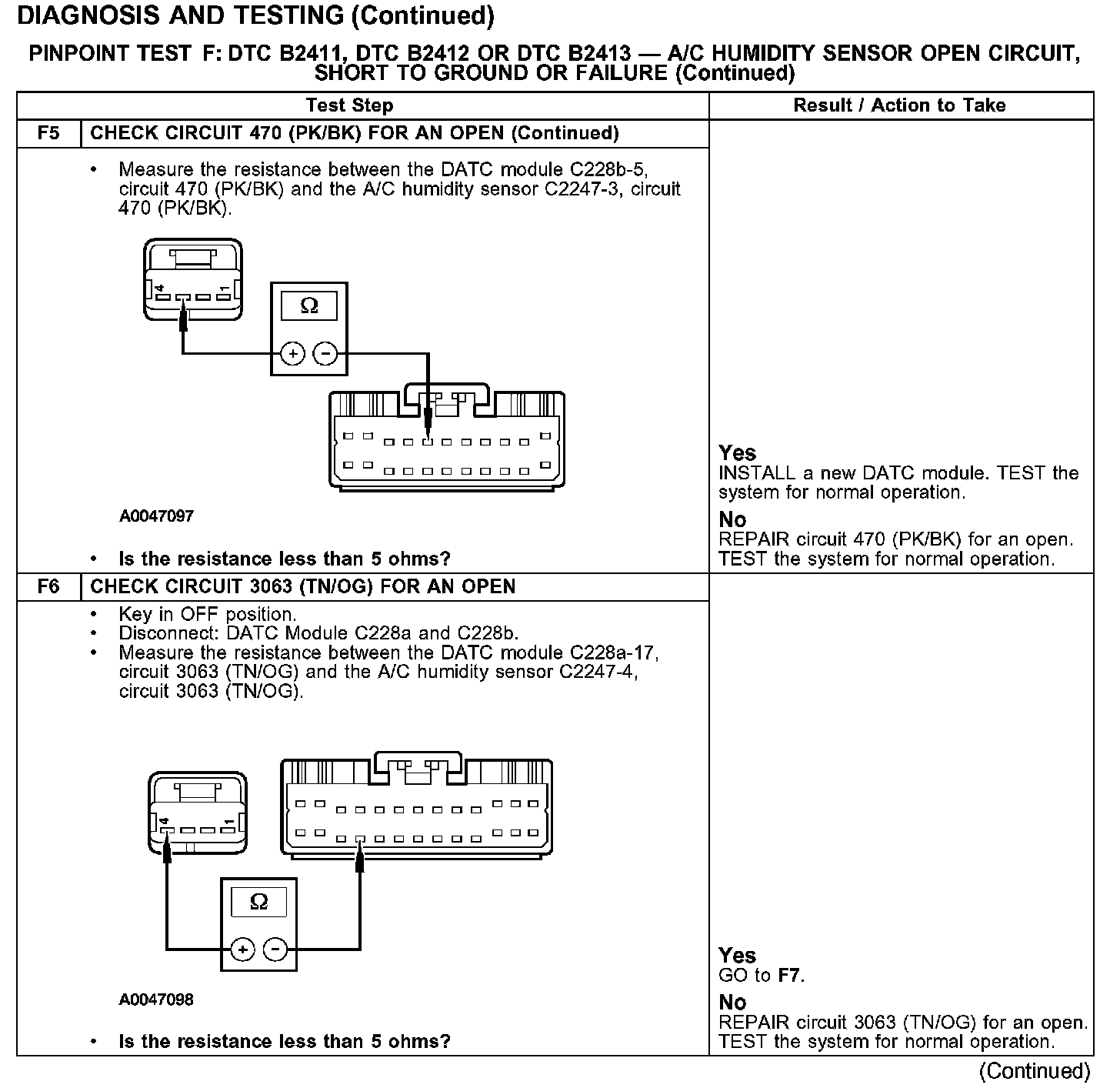 PINPOINT TEST F: DTC B2411, DTC B2412 OR DTC B2413 - A/C