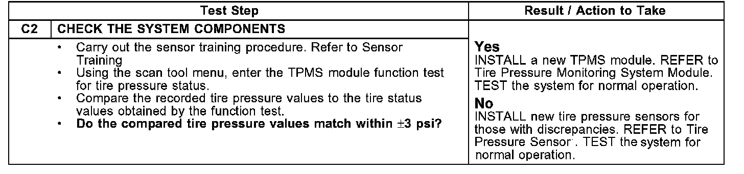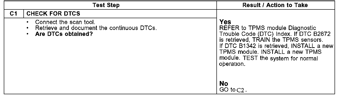 PINPOINT TEST C: MESSAGE CENTER DISPLAYS TPMS SYSTEM FAULT