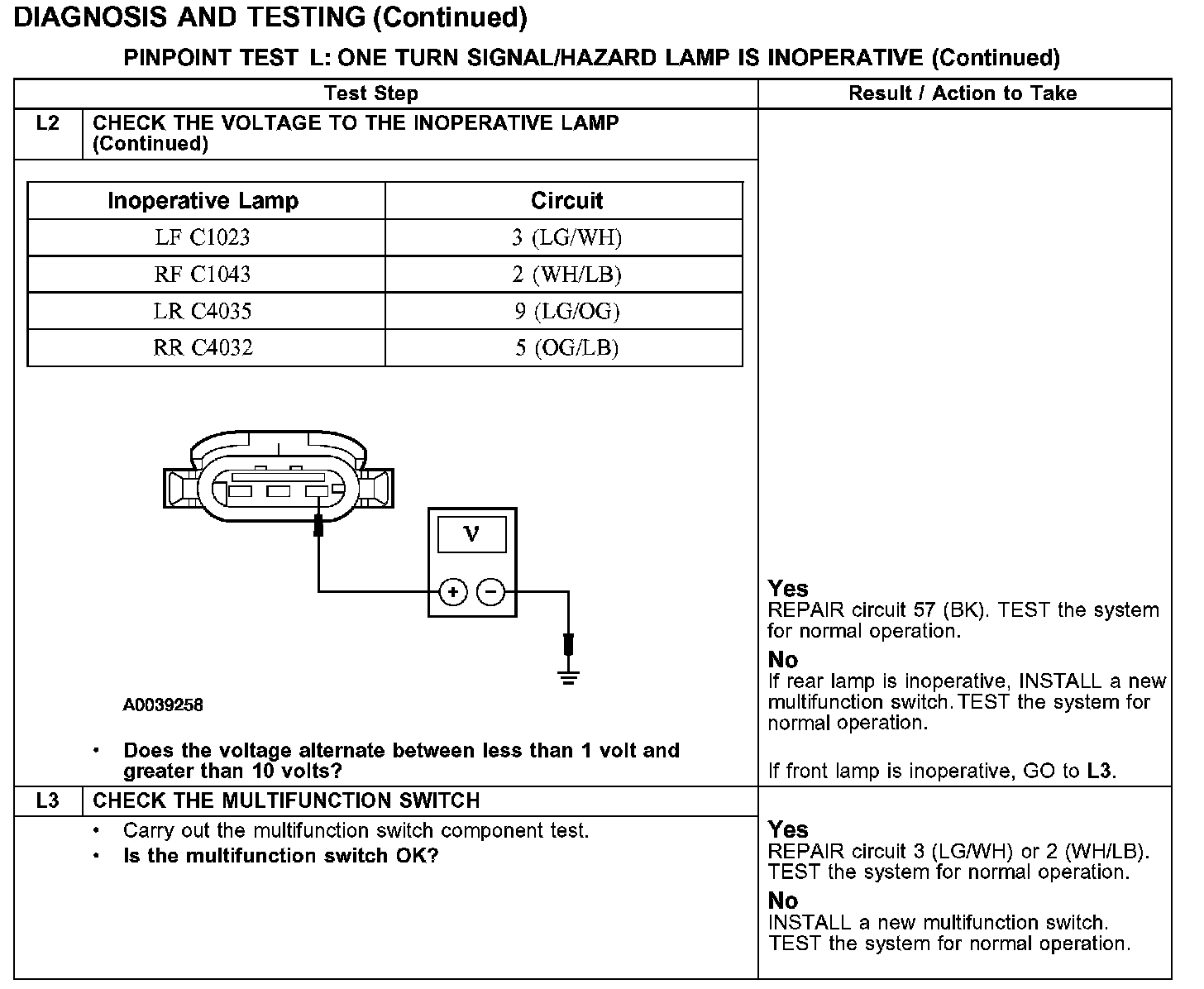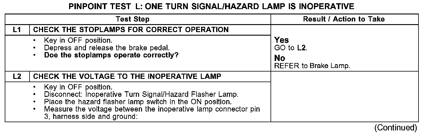 PINPOINT TEST L: ONE TURN SIGNAL/HAZARD LAMP IS INOPERATIVE