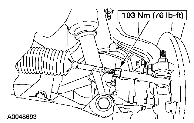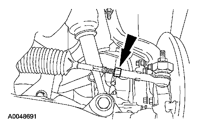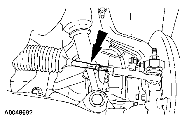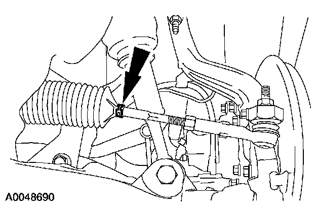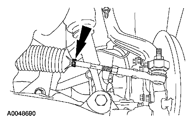 3. NOTE: Do not allow the steering gear bellows to twist while rotating the spindle tie-rod.
