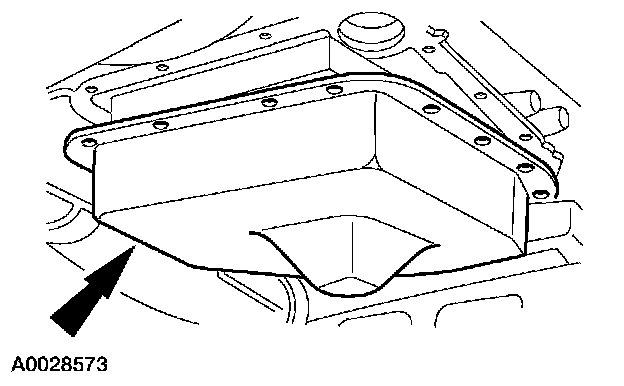 3. After the fluid has drained, remove the transmission fluid pan.