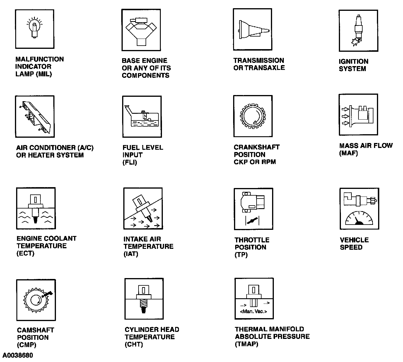 These icons are used in the illustrations of the On Board Diagnostic monitors.