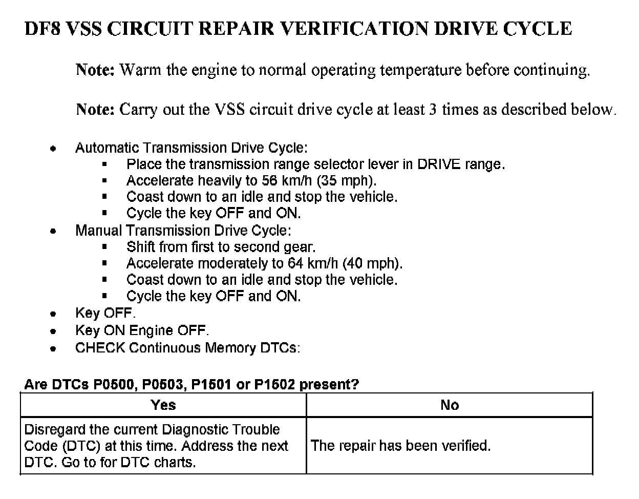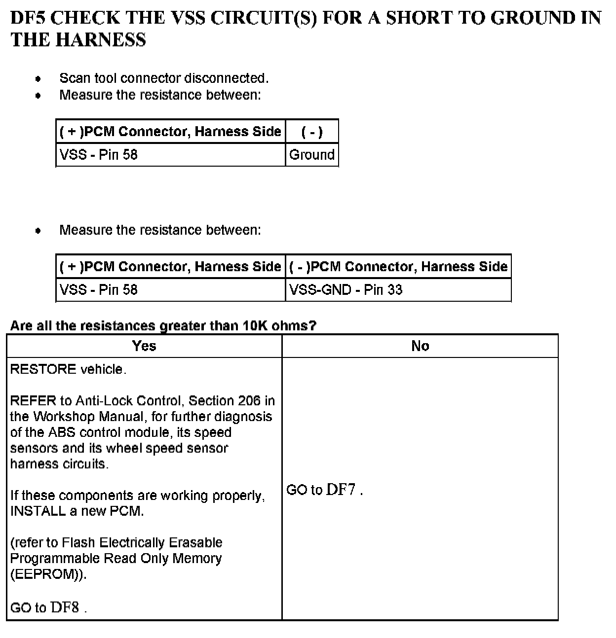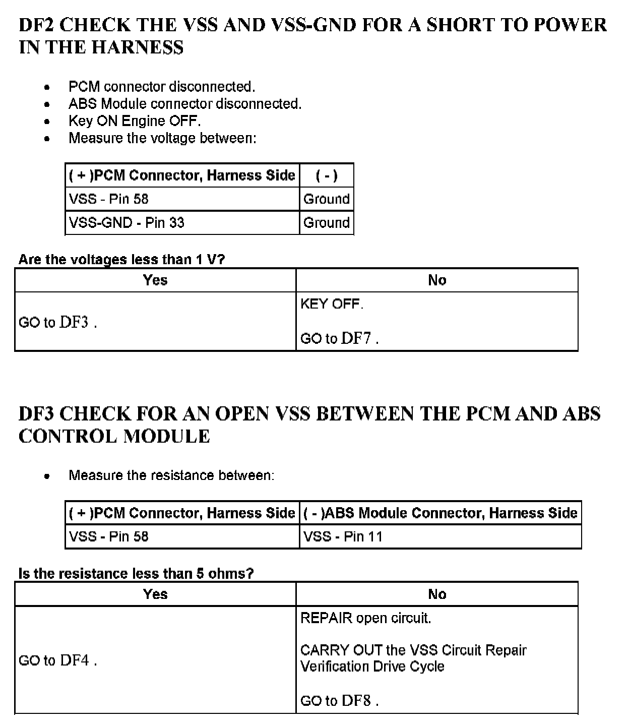 Tests DF: Vehicle Speed Circuit Check