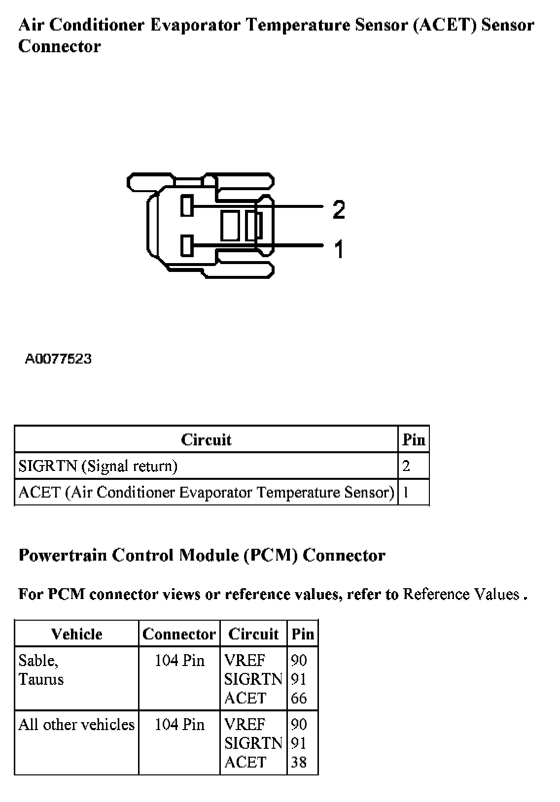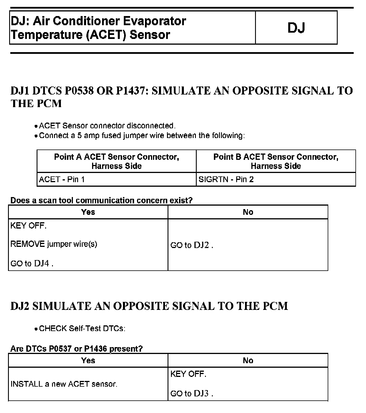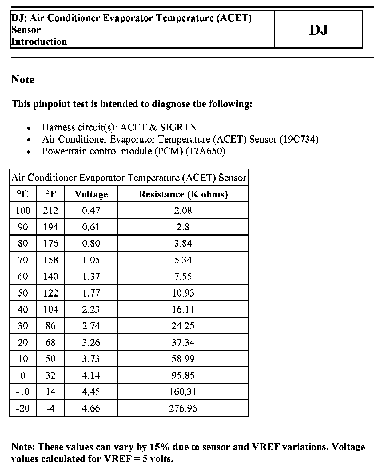 PINPOINT TEST DJ: AIR CONDITIONER EVAPORATOR TEMPERATURE SENSOR