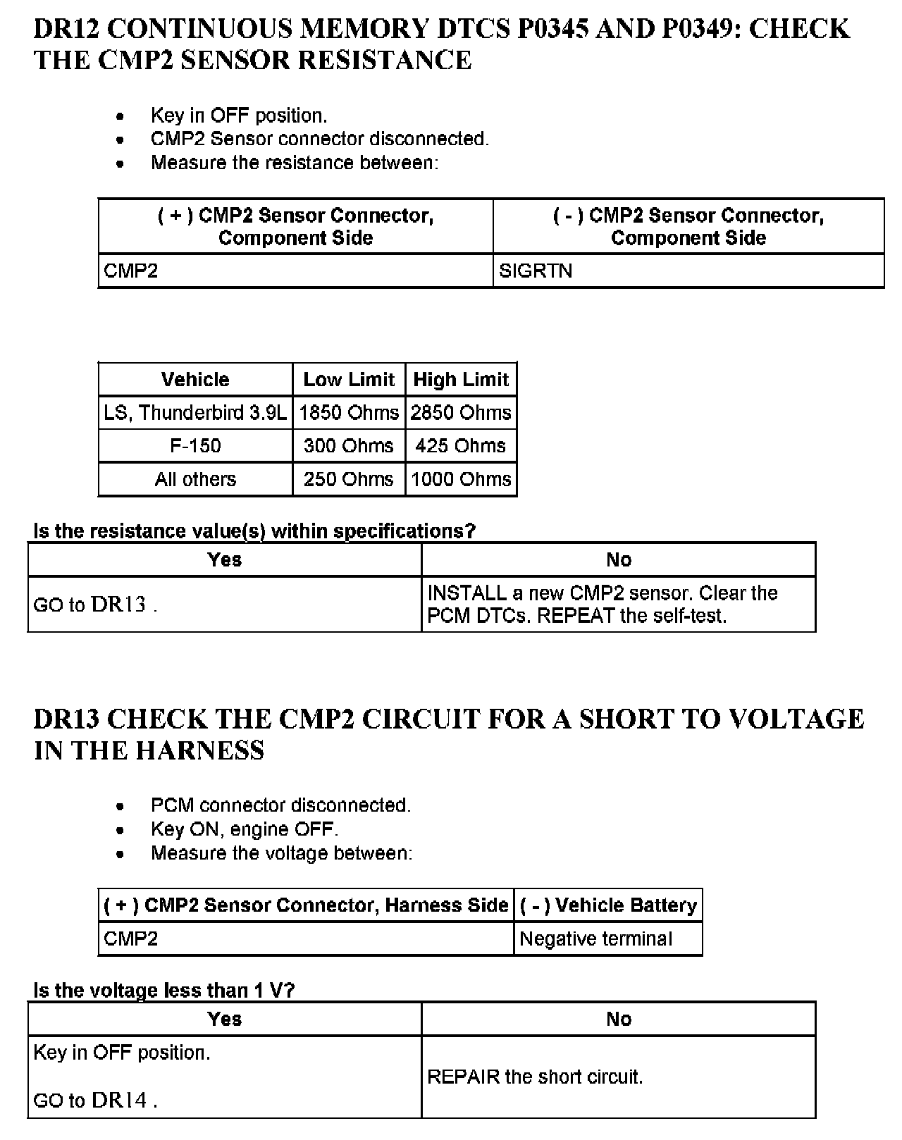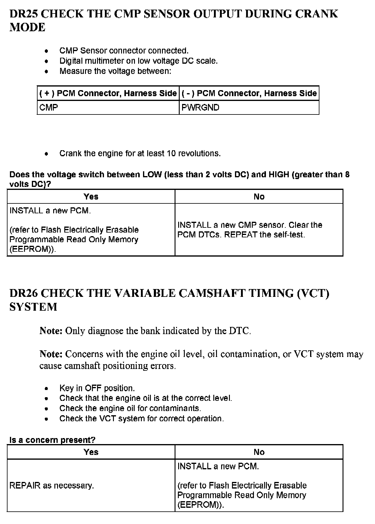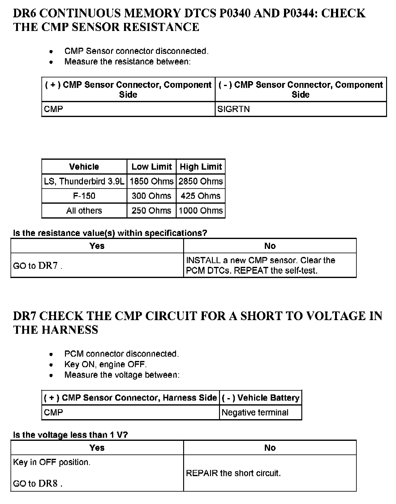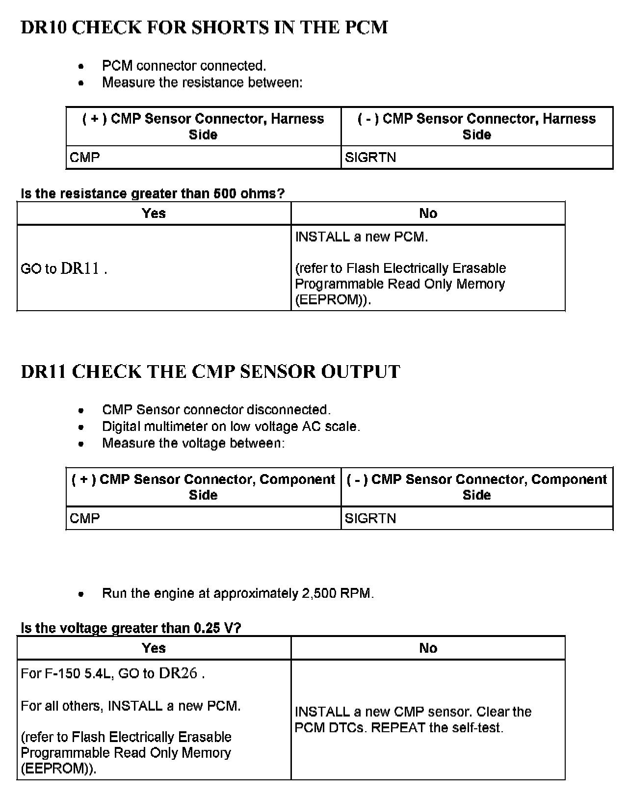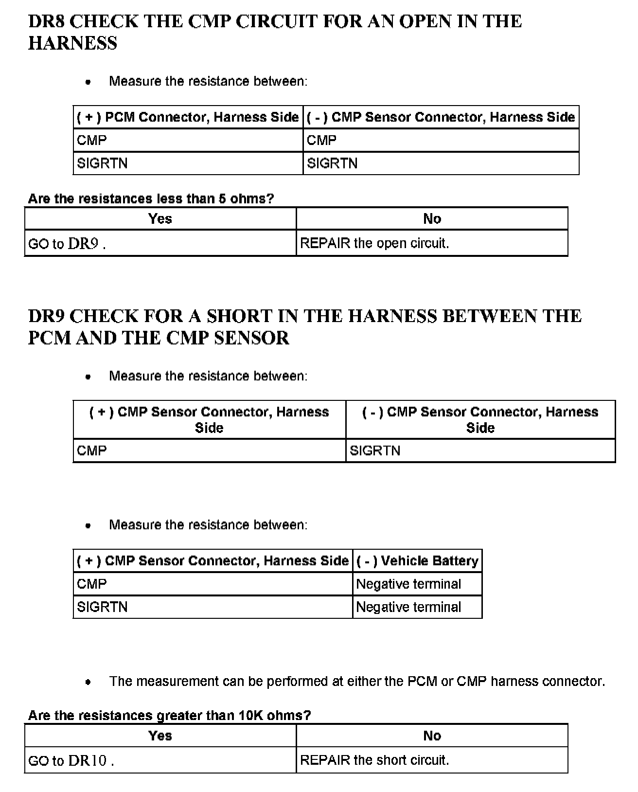Tests DR: Camshaft Position (CMP) Sensor