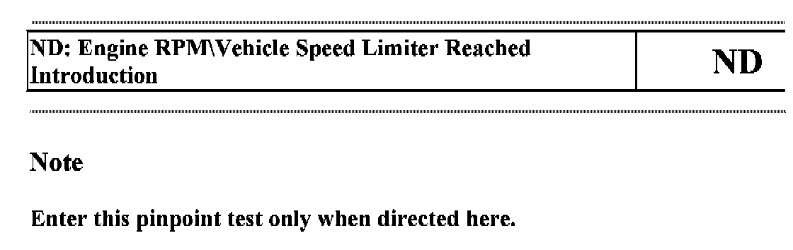 PINPOINT TEST ND: ENGINE RPM\VEHICLE SPEED LIMITER REACHED