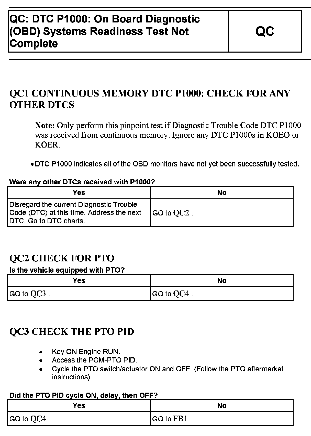 Tests QC: OBD Systems Readiness Test Not Complete - DTC P1000