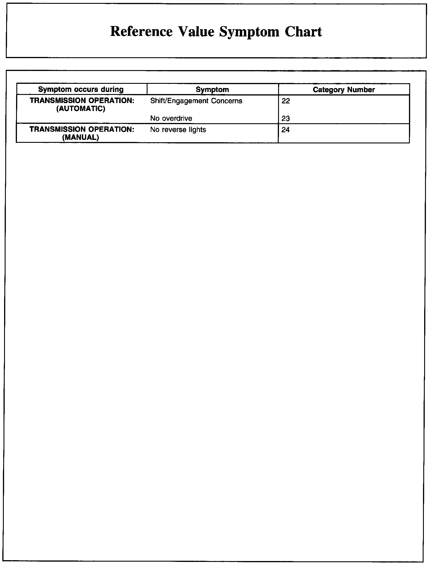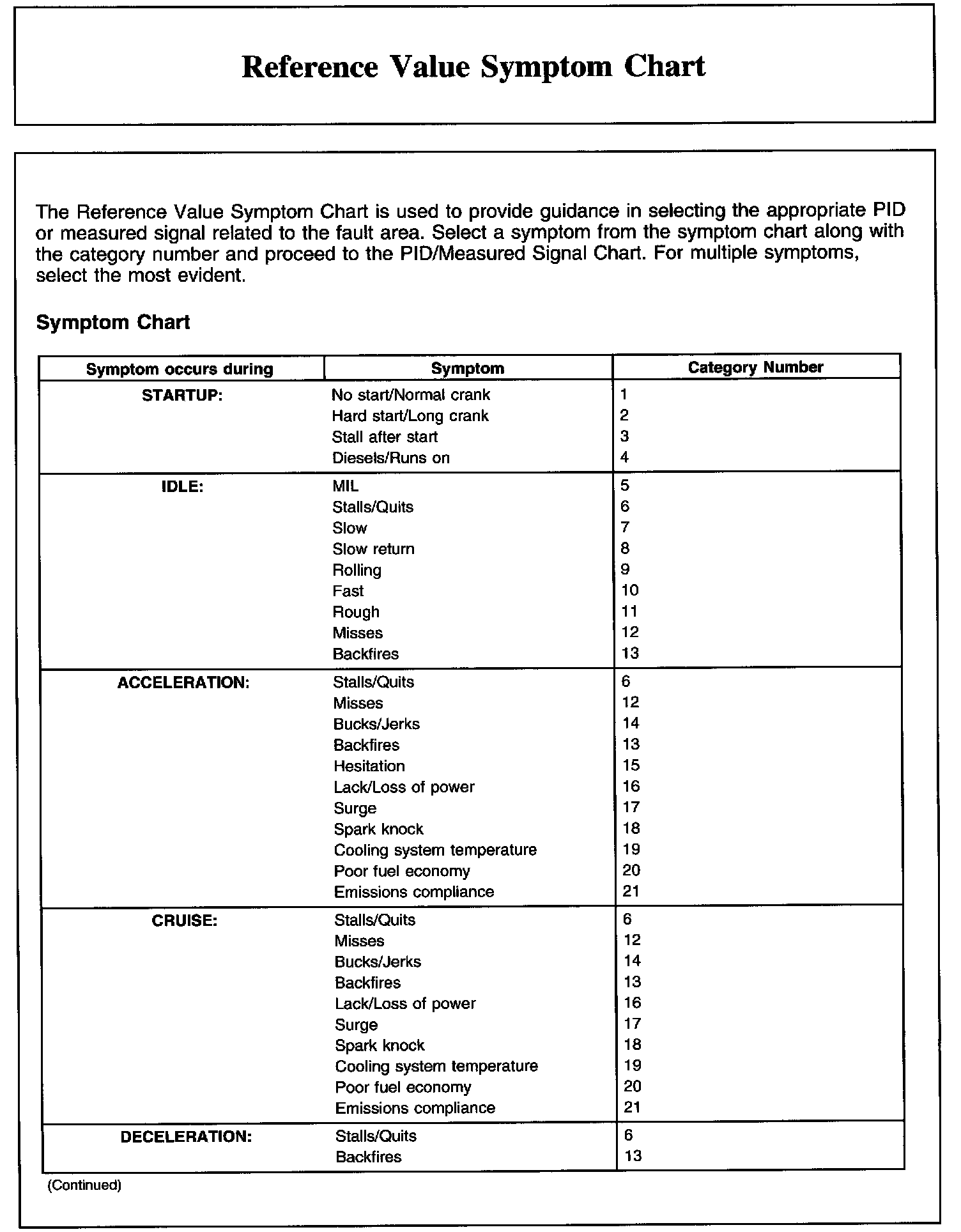 Reference Value Symptom Chart, Part 1: