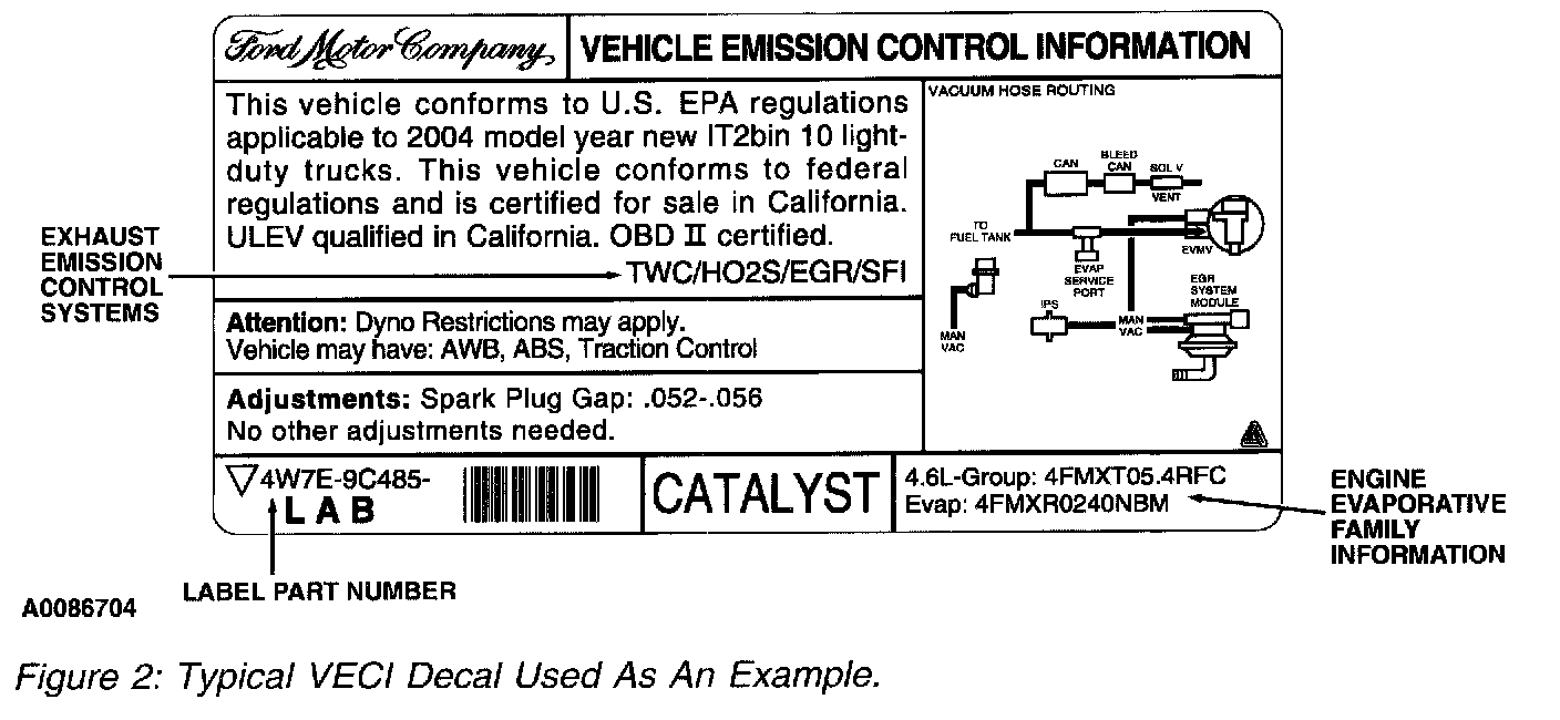 ENGINE/EVAPORATIVE EMISSION SYSTEM INFORMATIONTypical VECI Decal Used As An Example: