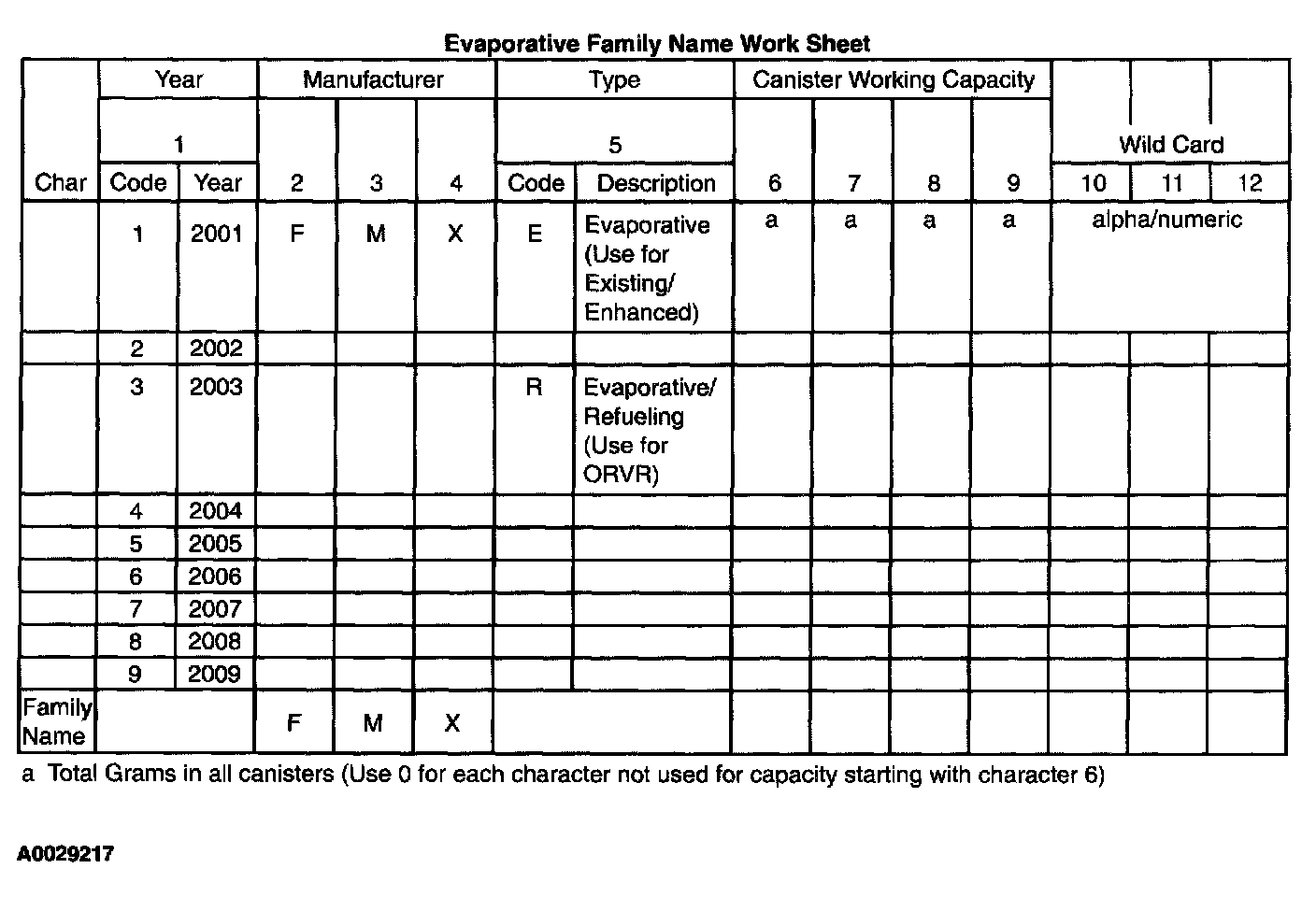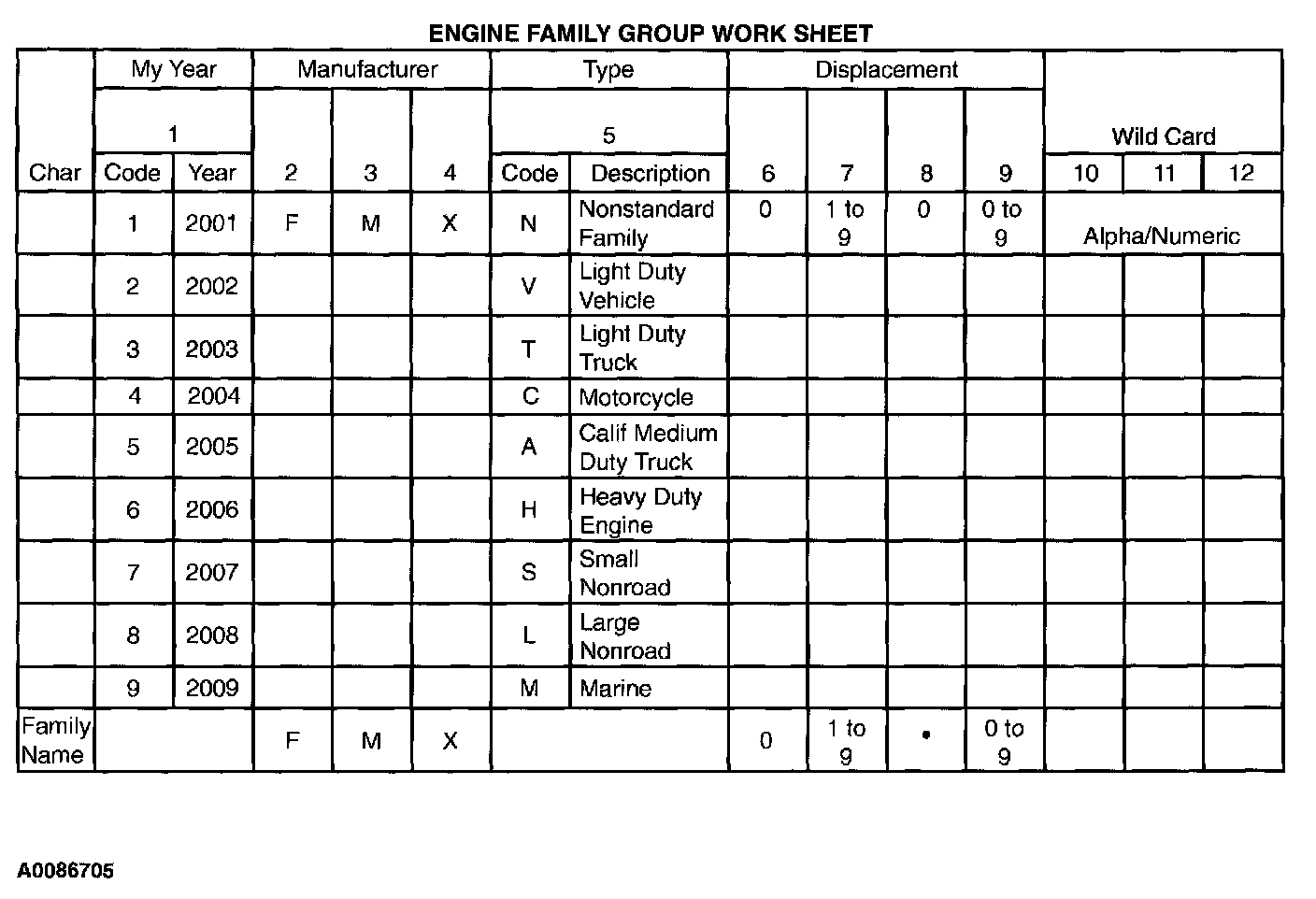 Manufacturers must use a standardized system for identifying their individual engine families. The system described below was developed by the Environmental Protection Agency (EPA) in 1991 to meet new regulatory requirements for 1994 and later model years.