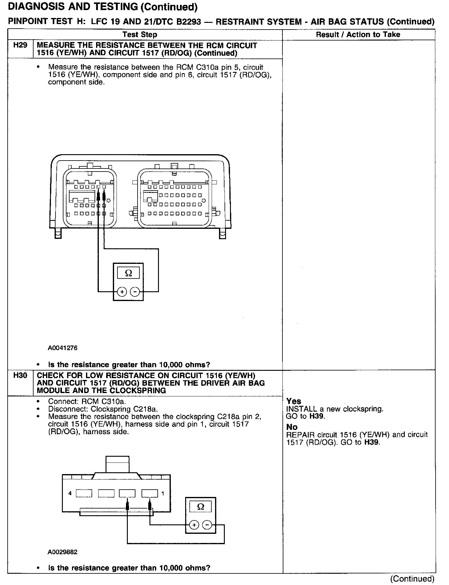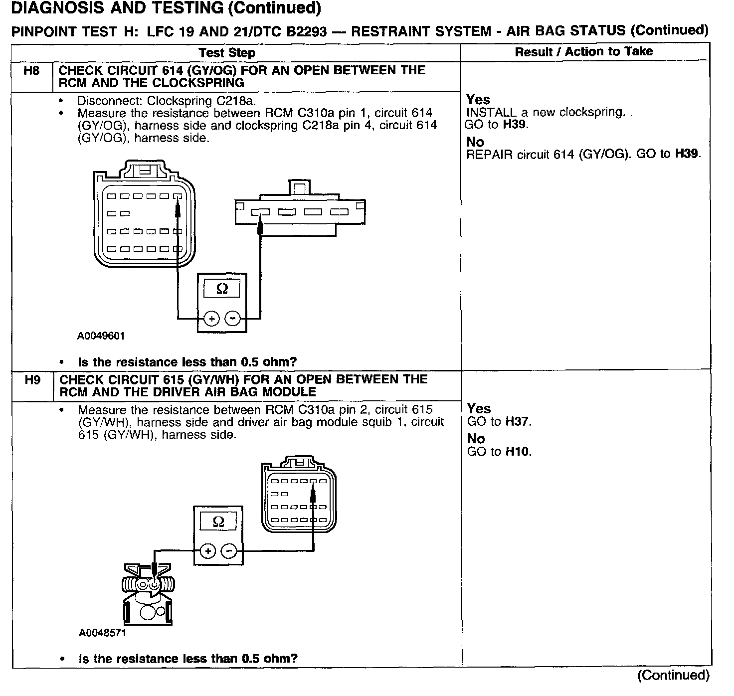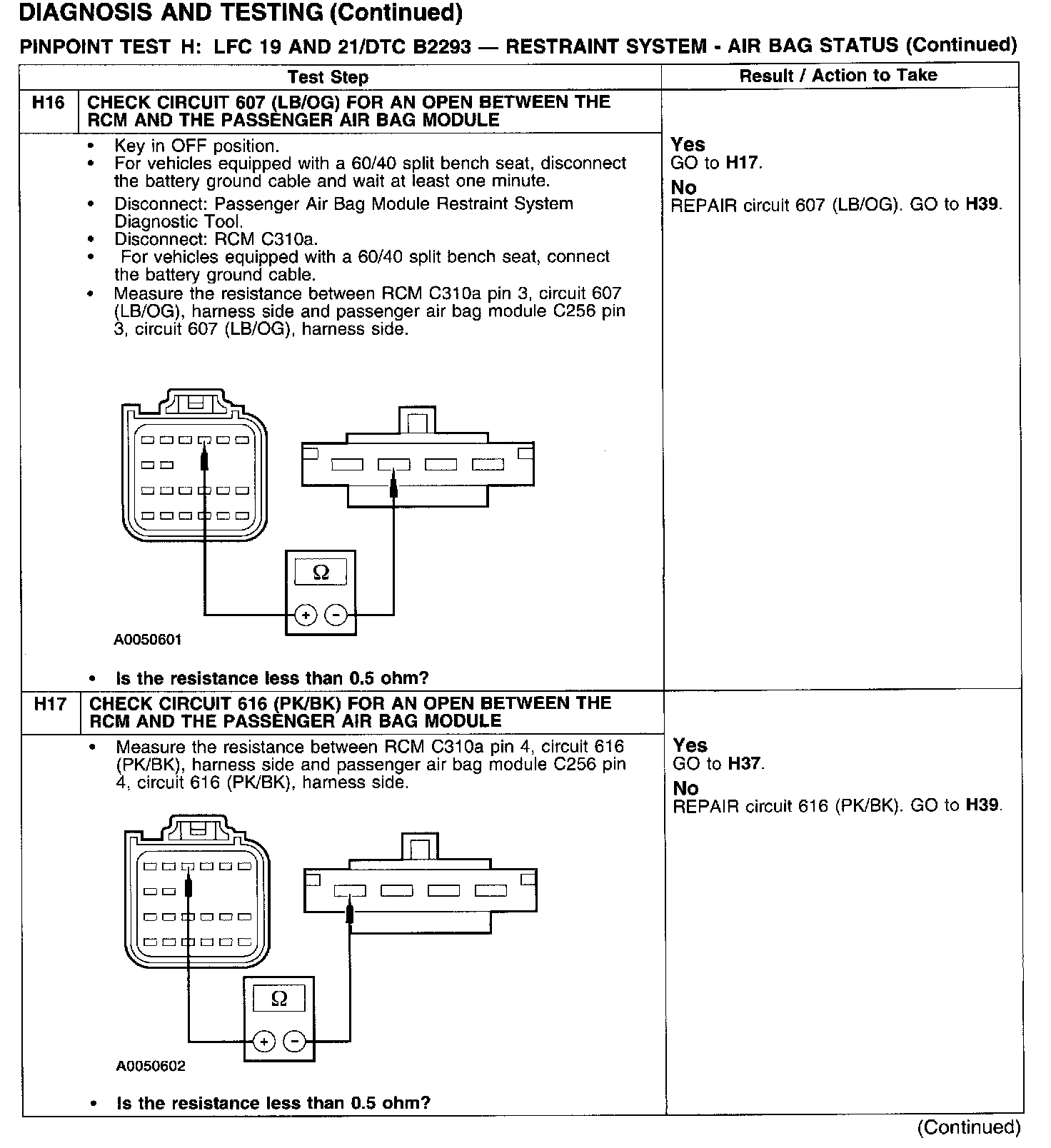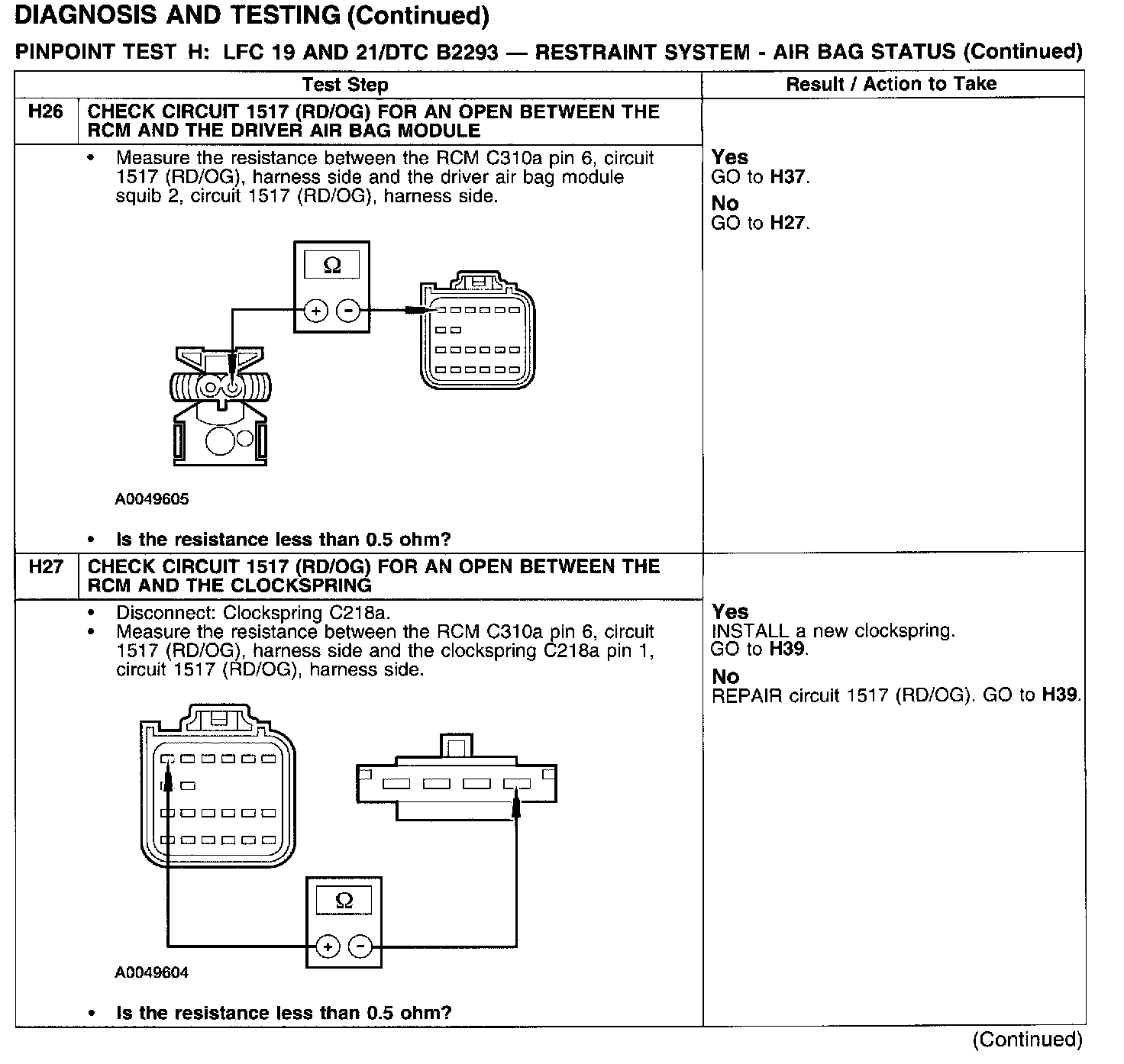PINPOINT TEST H: LFC 19 AND 21/DTC B2293 - RESTRAINT SYSTEM - AIRBAG STATUSTest H1: