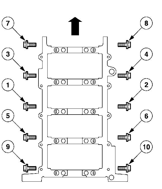 Vertical main bearing cap fasteners and sequence.