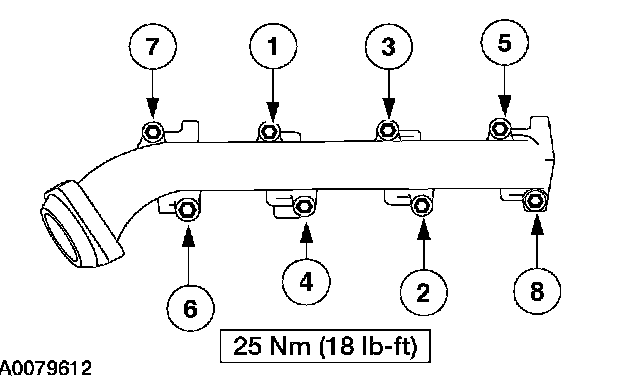 Exhaust Manifold Torque and Sequence 25 Nm (18 ft. lbs.)