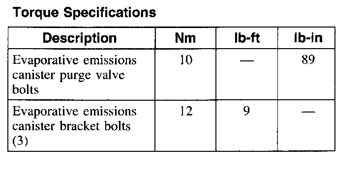 Torque Specifications: