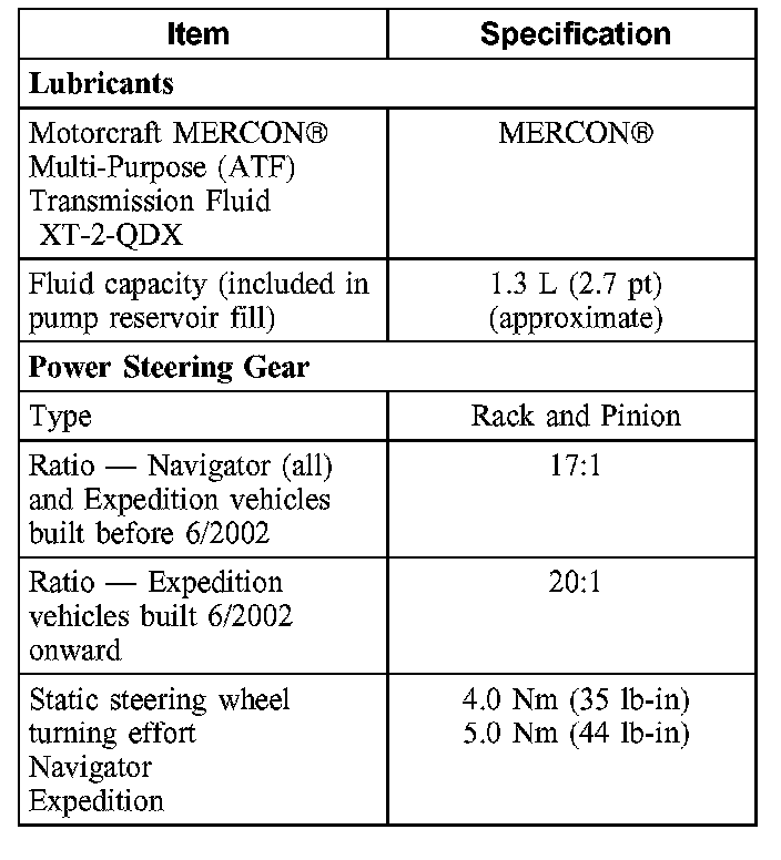 Steering System - General Specifications