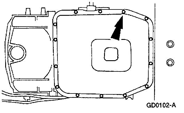 ^ Loosen the transmission fluid pan bolts and allow fluid to drain. After fluid is drained remove the bolts.
