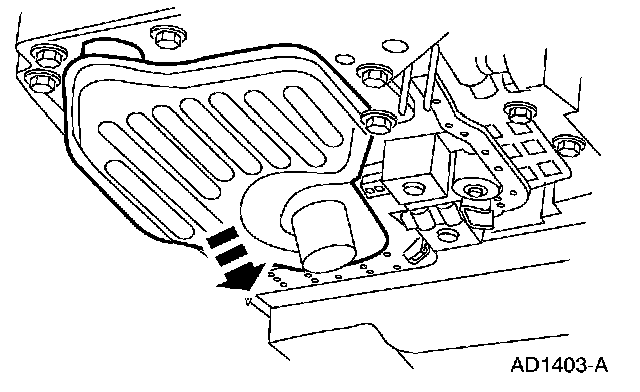 4. Pull down evenly and remove the transmission fluid filter and seal.
