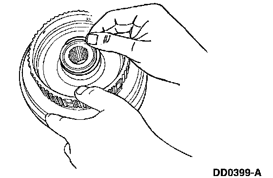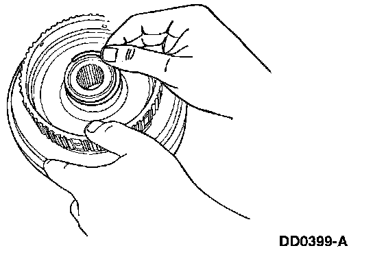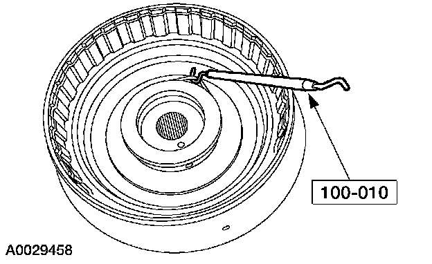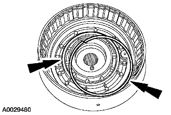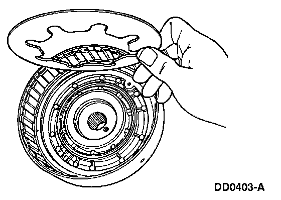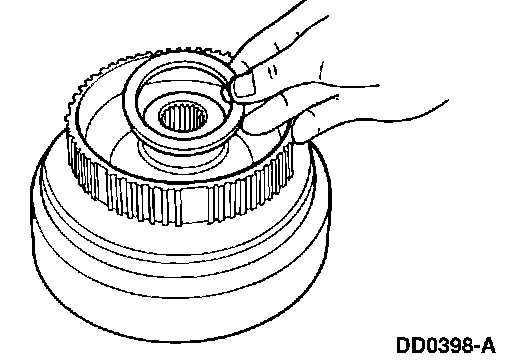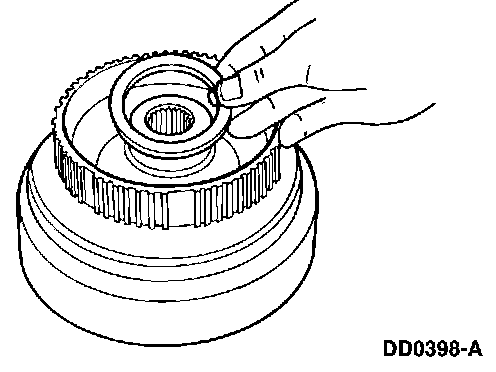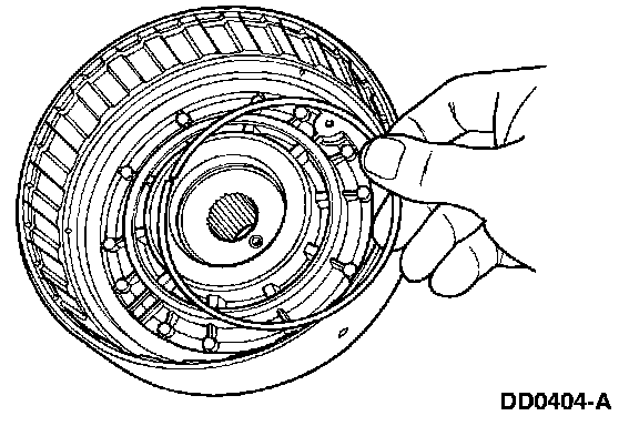 7. Install the forward clutch piston return spring retaining ring. Make sure it is correctly seated in the groove.