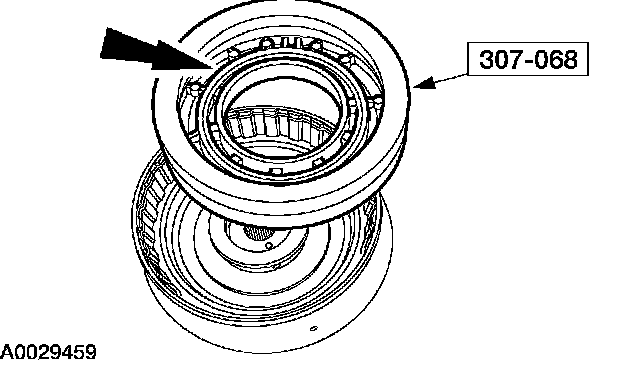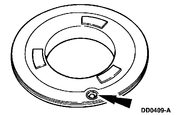 6. CAUTION: To ensure durability, the notch between the spring fingers must be positioned so that both ends of the forward clutch piston apply ring are visible.