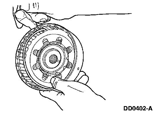 16. Check the clutch plates for flatness and wear on the clutch hub splines. Discard any plate that does not slide freely on the splines or that is not flat.