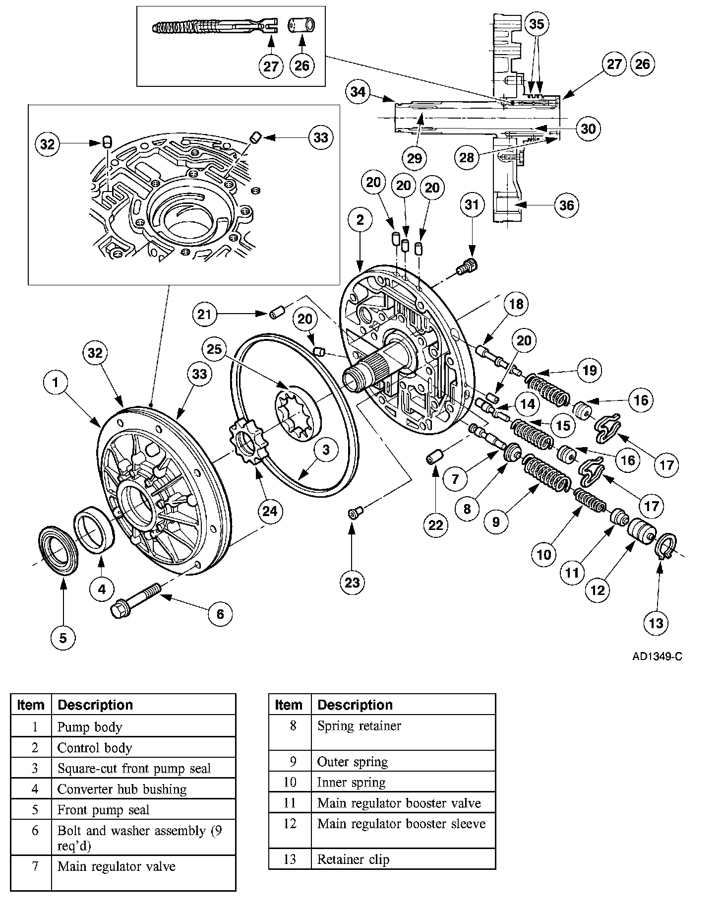 NOTE: Inspect the main regulator booster valve and sleeve assembly. If the pump valve bore is not damaged but the valve and sleeve are worn, install a new valve and sleeve. For additional information, refer to Pump Assembly, Disassembled View.