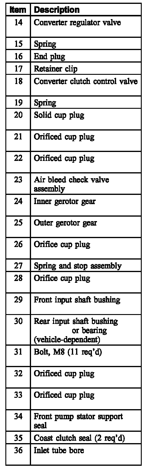 1. Install the main regulator valve and sleeve assembly, converter clutch shift valve assembly, and the converter regulator valve assembly.